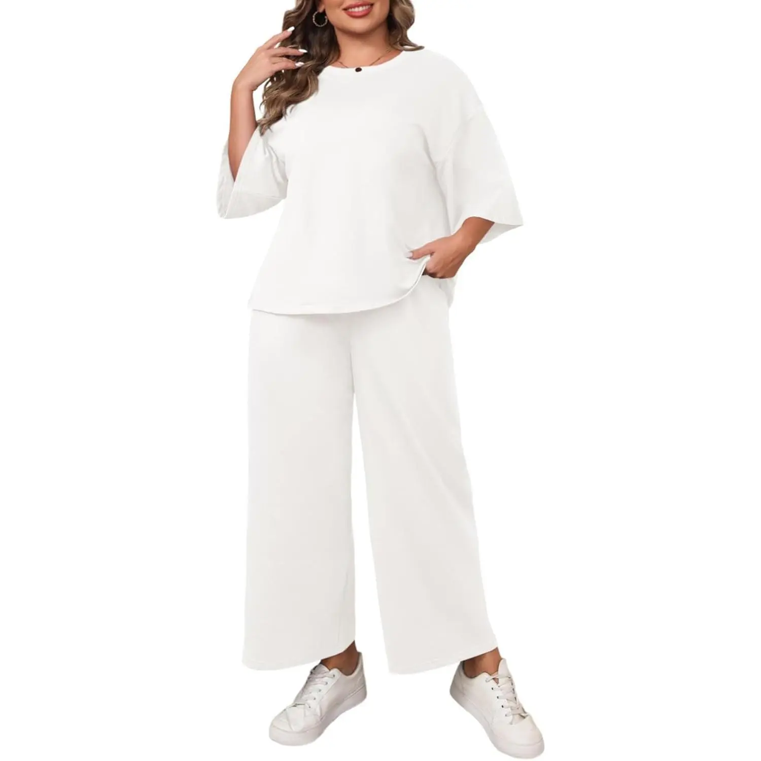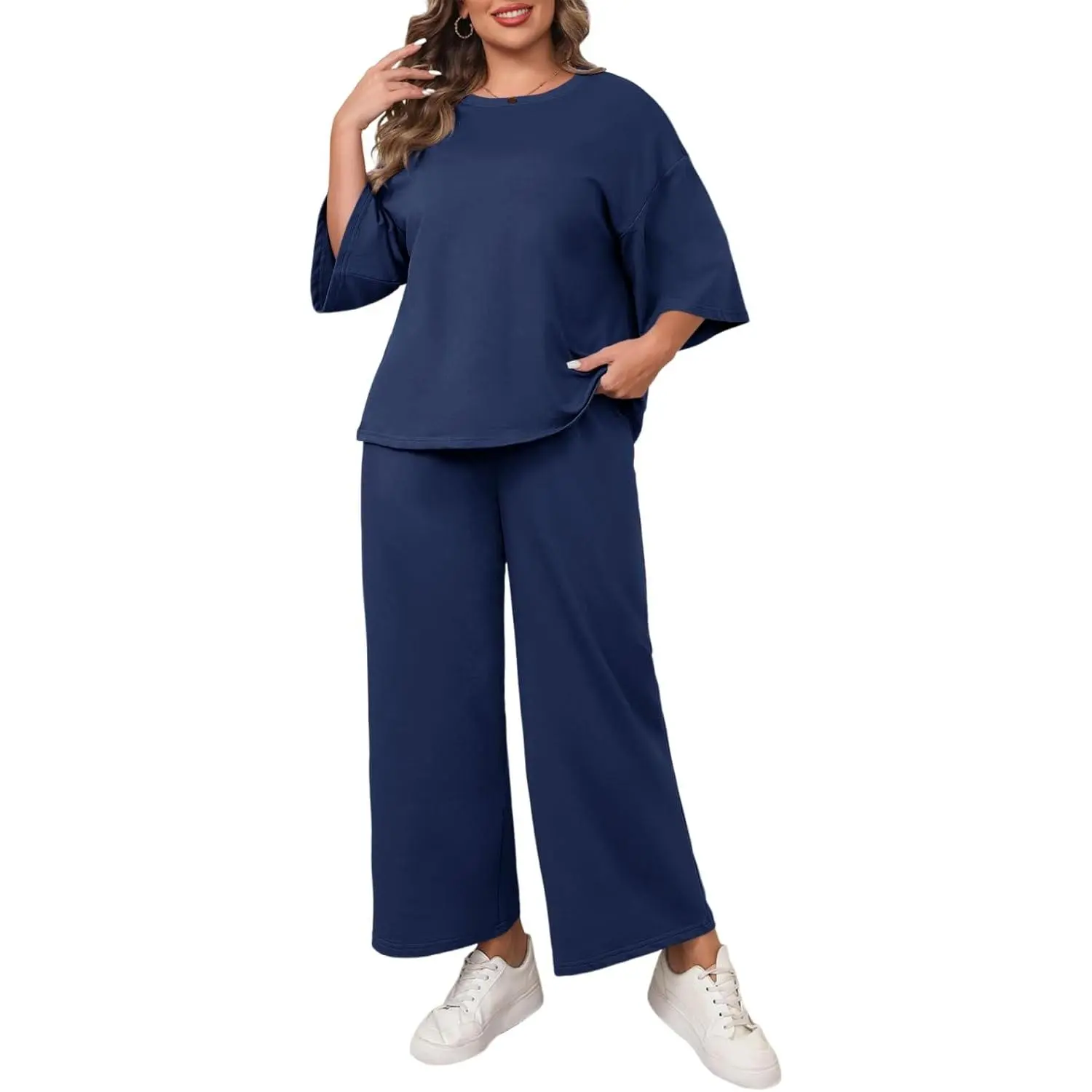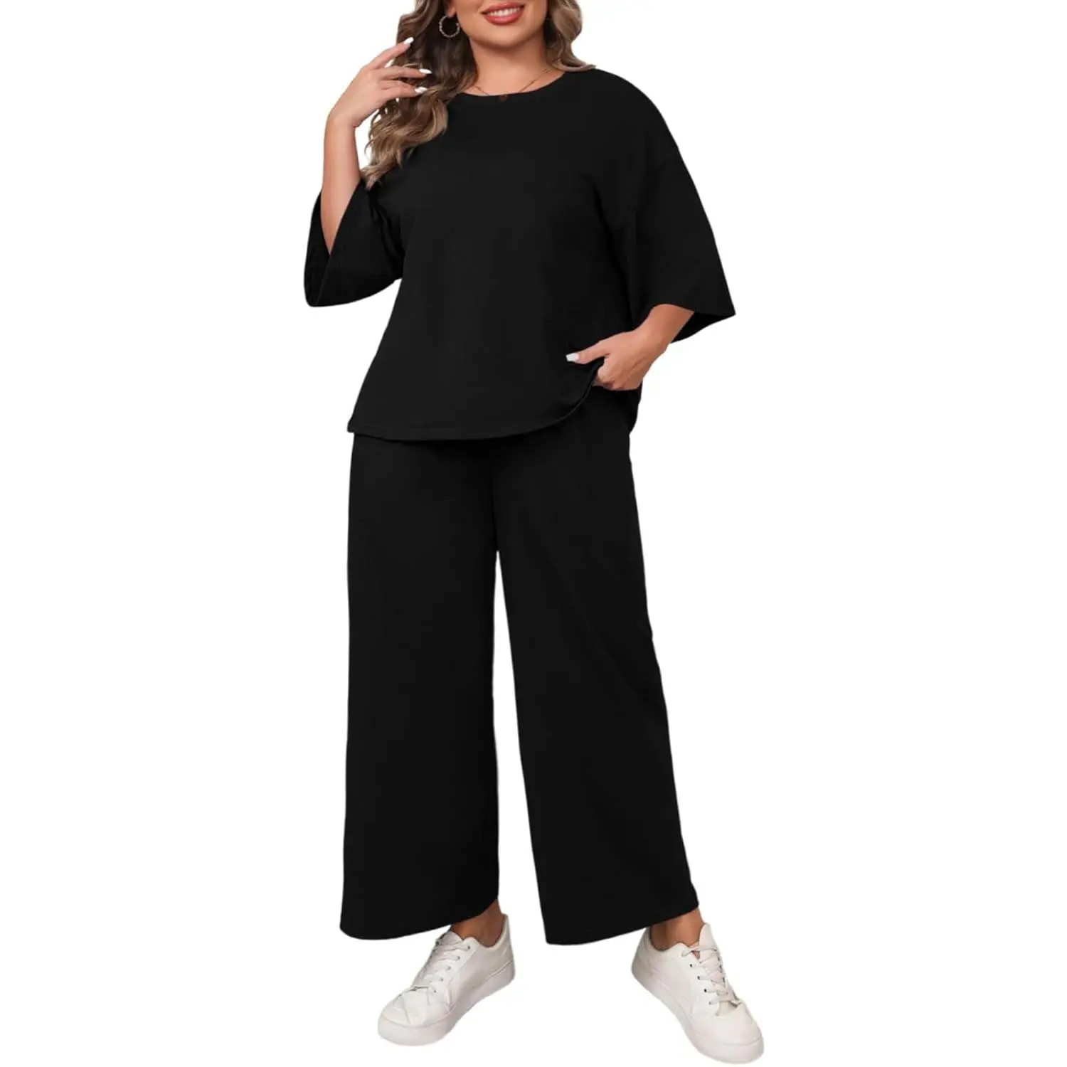 This outfit is cute and very comfortable. I wear it with some cute sneakers and get many compliments. I ordered it oversized for extra comfort.