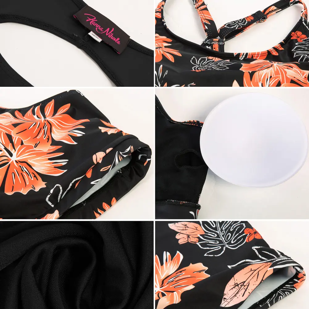 Hanna Nikole Plus Size Athletic Swim Tops Sport Bra with Boy Shorts