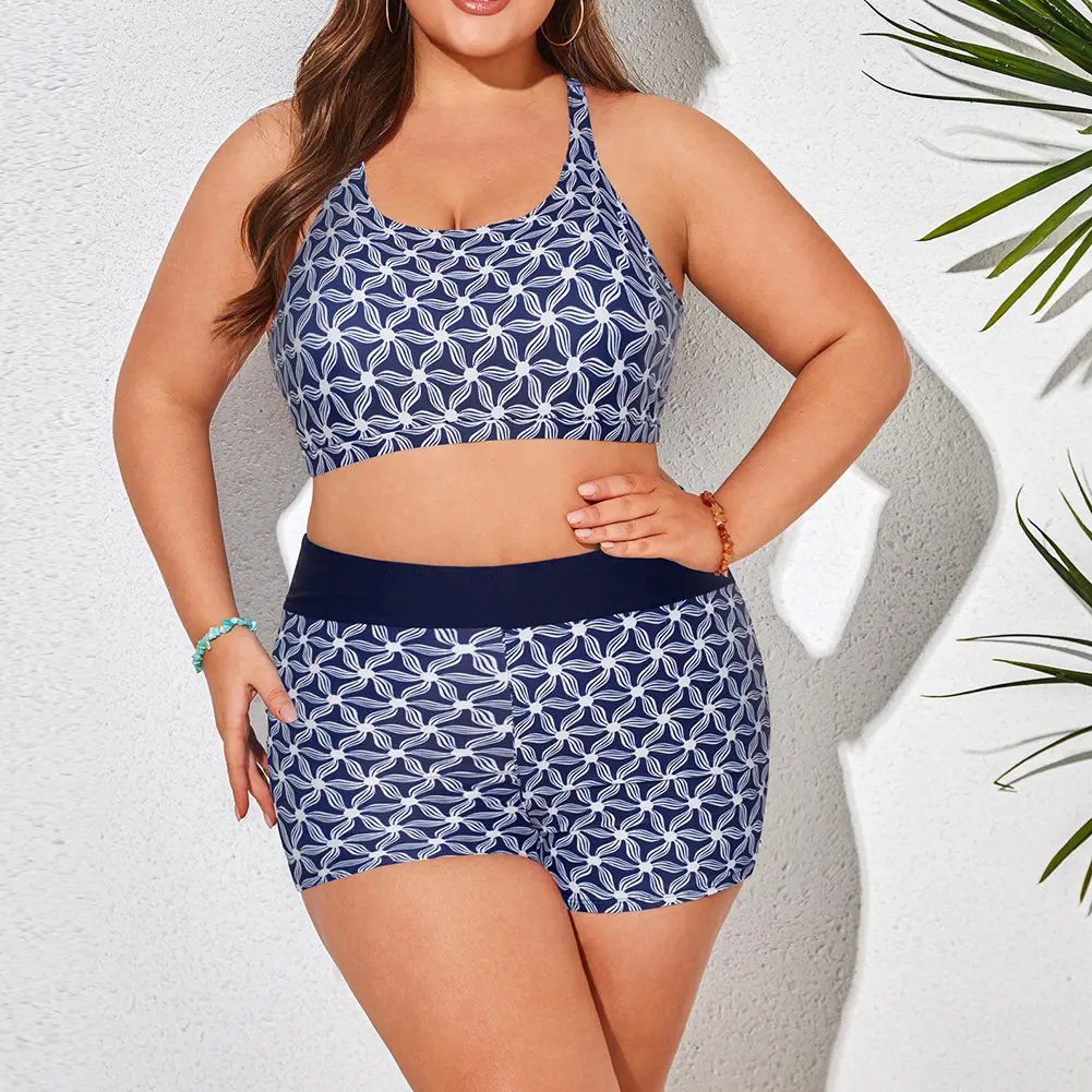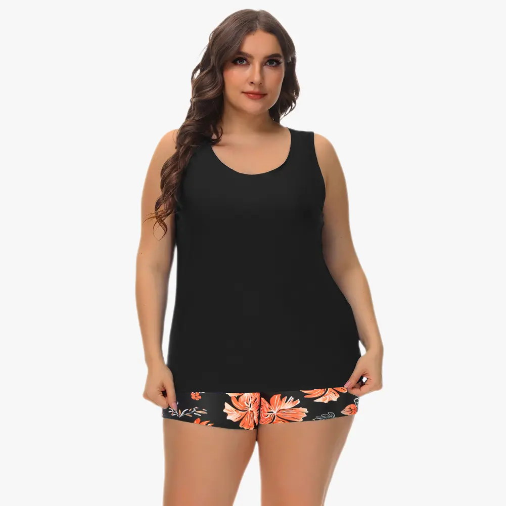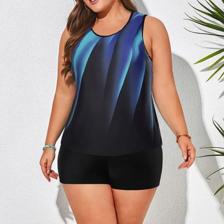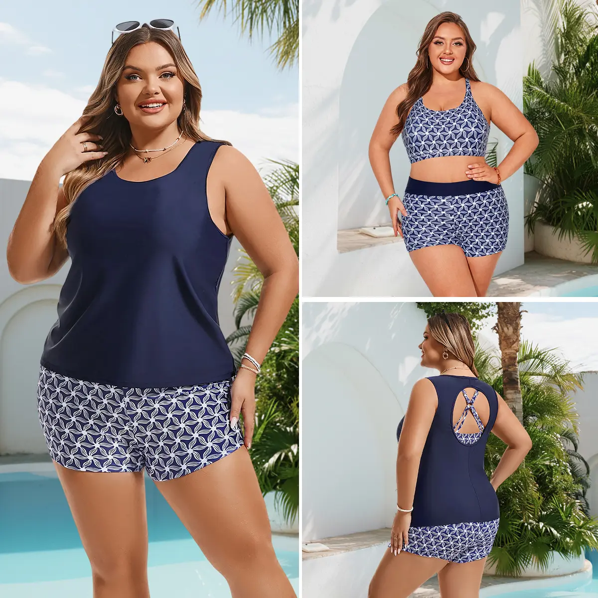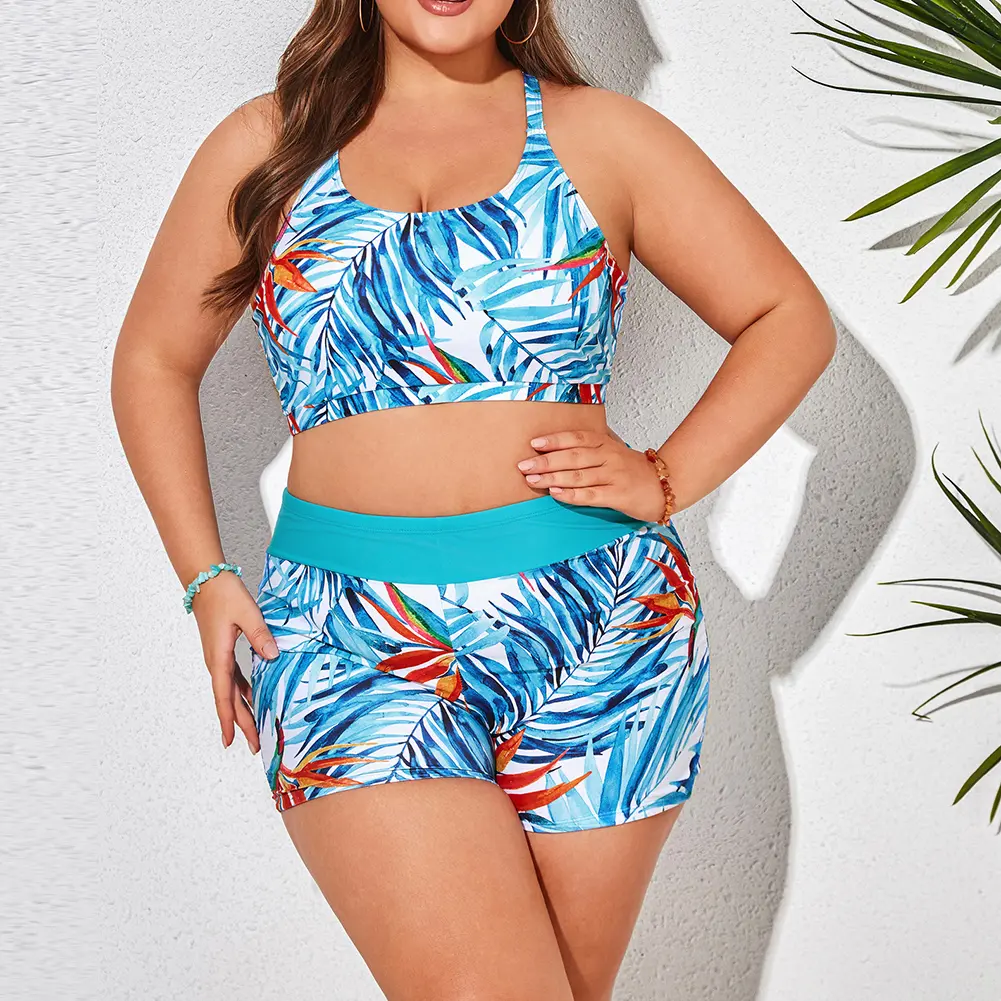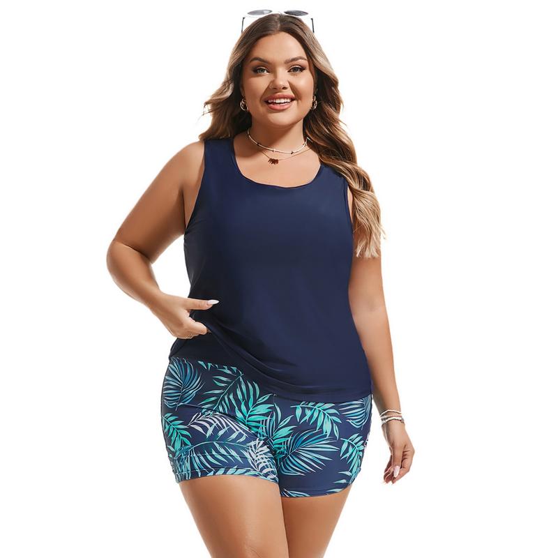 ·【3-piece swimsuit】Plus size swim vest, sports bra and boxer shorts. The modest 3-piece swimsuit provides a fun combination, making it charming and cute on the summer beach.