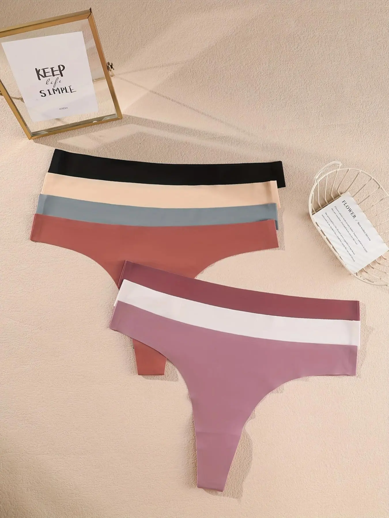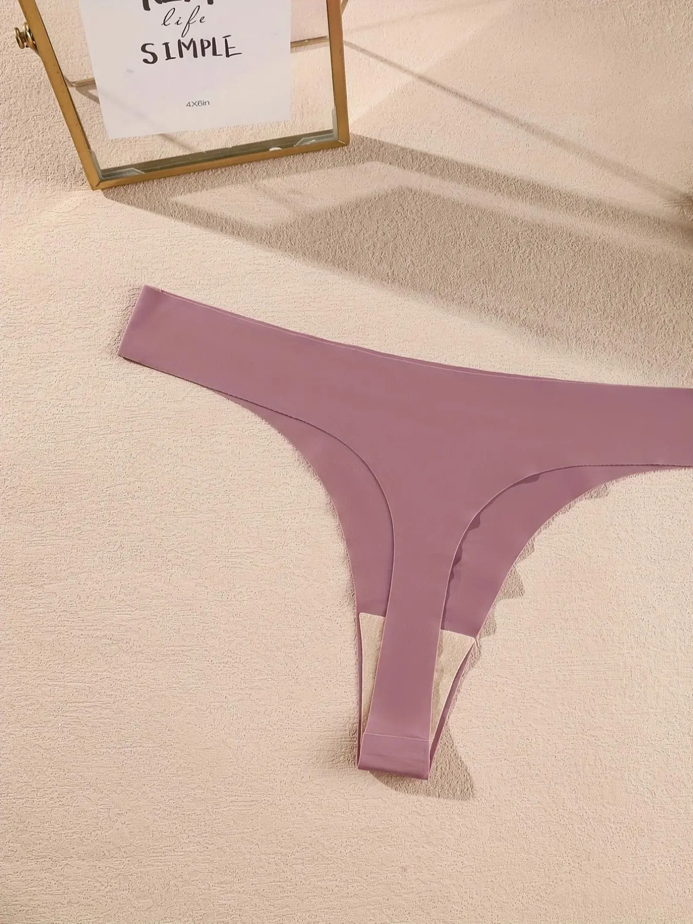 5. Plus Size 7pcs Solid Thong, Soft Comfy Breathable Seamless Panty for Daily Wear, Women's Underwear for All Seasons