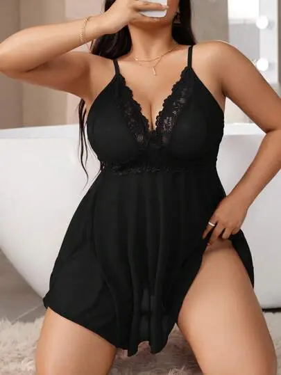 2pcs Plus Size Lace Patchwork Lingerie Set