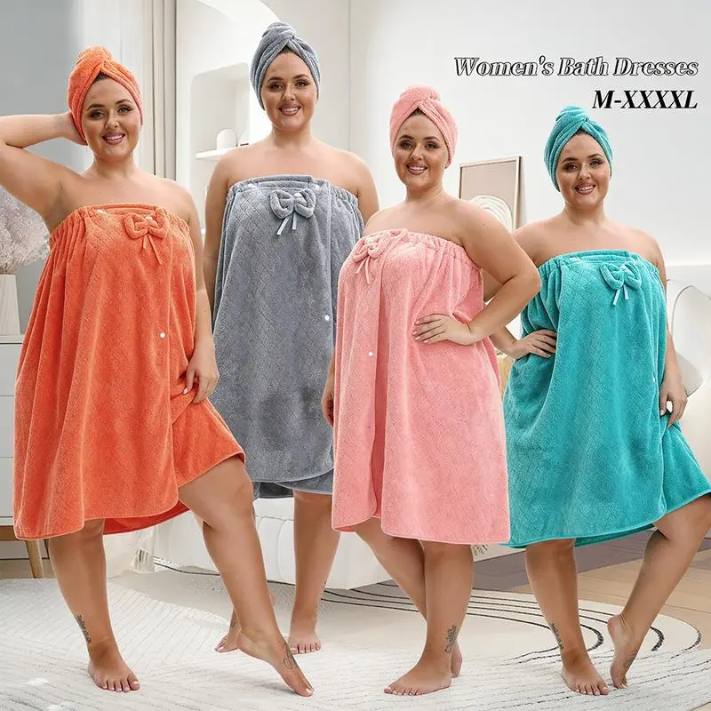 This plus size bath skirt and shower cap is beautiful. It's fit around your chest and it comes all the way up and you have plenty of room and it is very warm. That cap fits great on your head while you taking a shower or when you get out the shower the bath. This color is awesome