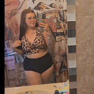 Really liked this swimsuit. I’ve bought two pieces in the past that roll and this one stays put and is actually high wasted. Nice and roomy I’m a 26 and could’ve sized down if I wanted a more snug fit.