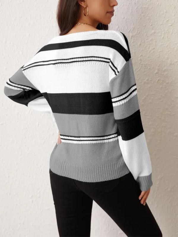 【Layered Stripes】: Featuring unique striped color-blocking, this knit top adds dimension and interest, distinguishing it from typical sweaters.