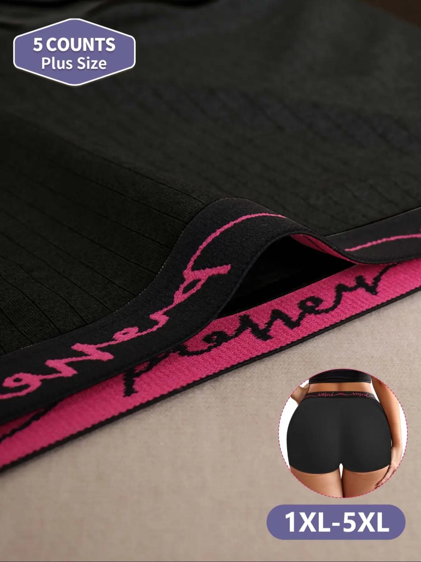 5. 【Plus Size】 Letter Tape Boxer Brief, Soft Comfy Breathable Curvy Panty for Daily Wear, Fit Women's Underwear for All Seasons