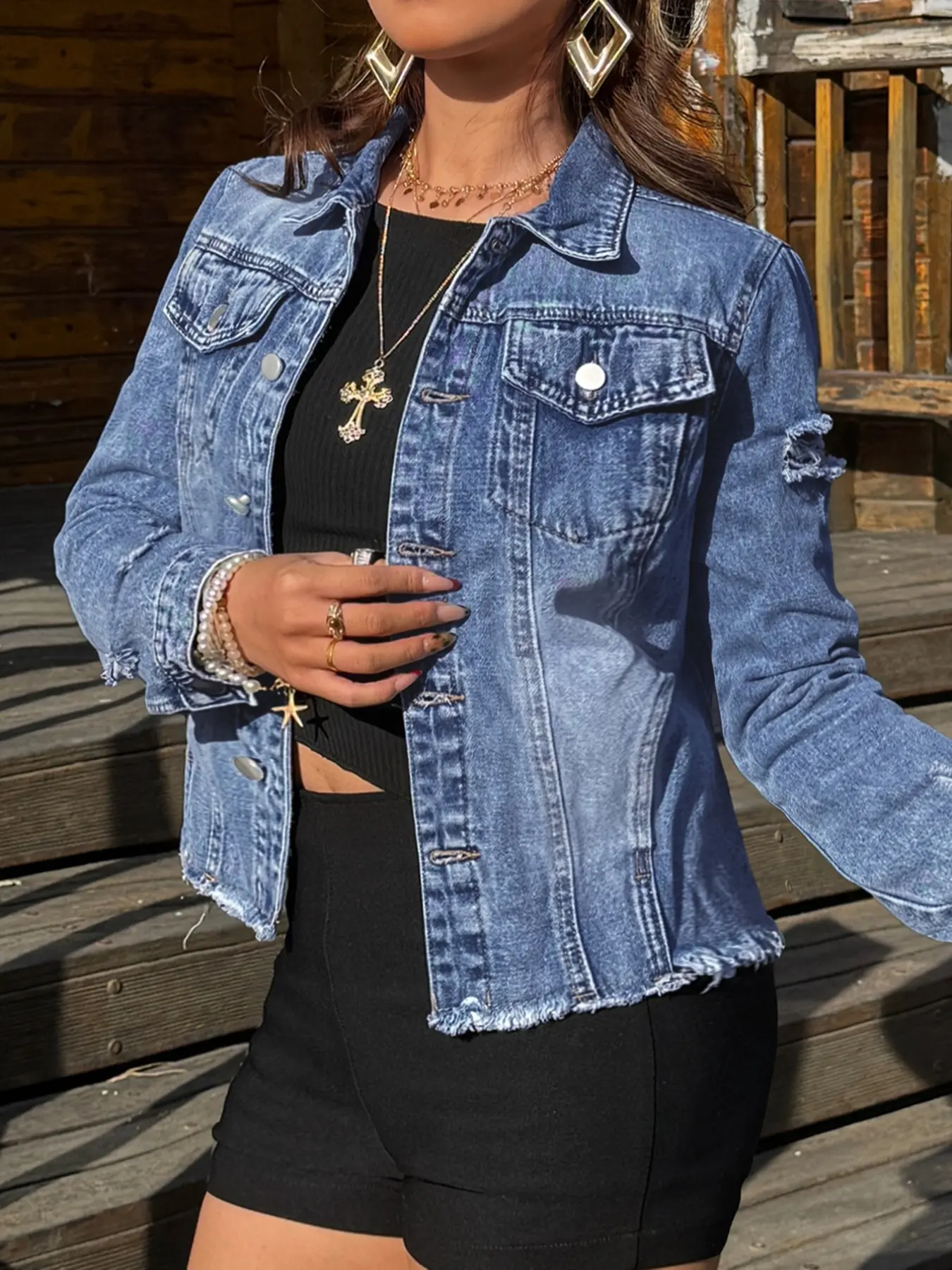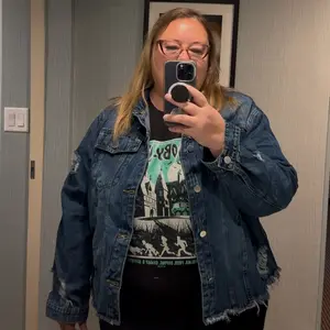I’m obsessed with this ripped denim jeans jacket , it’s a must have , sized up , I’m 36ddd, usually wear , xl but I bought xxl, follow the size quide online to make your purchase. It is Lightweighted, I just love this jacket . Besties hurry up and make your purchases today while stock lasts-don’t delay!
