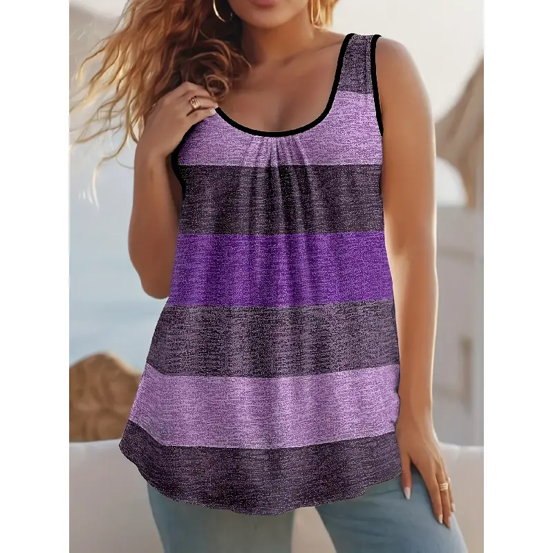 Plus Size - Plus Size - Elegant Patchwork Sleeveless Vest for Plus Size Women | Medium Stretch Fabric, Crew Neck, Ruched Bust Detail, Spring/Summer/Fall