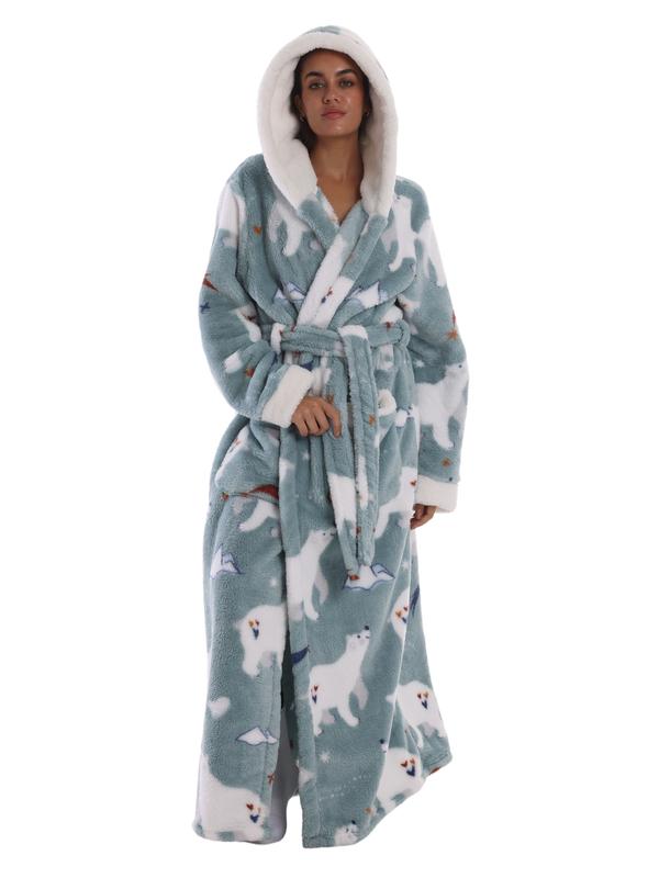 I’m 5’4” for reference and it comes to my ankles. Good length & so cozy. Thick but not too thick. The non hooded option is my new home uniform
