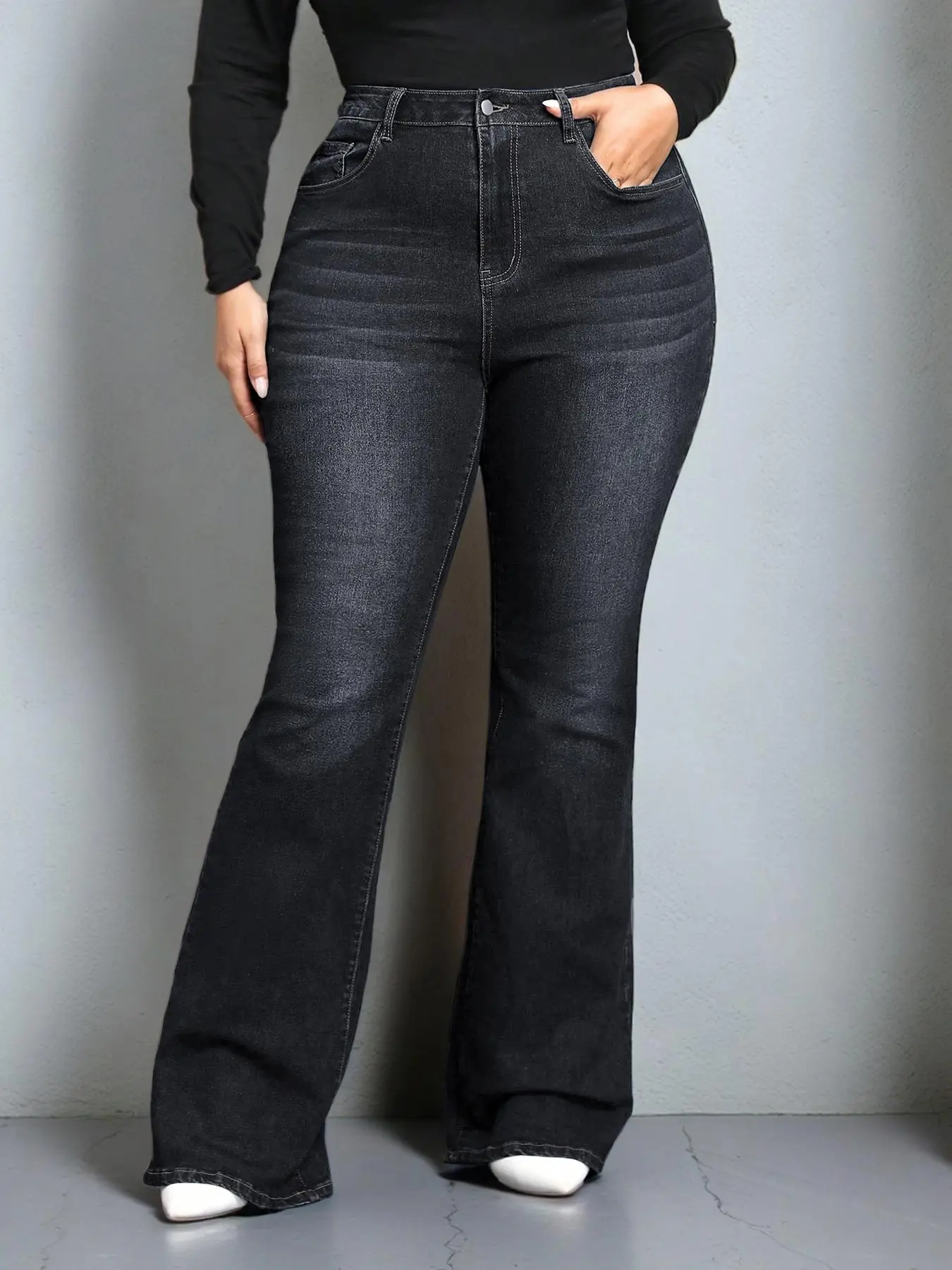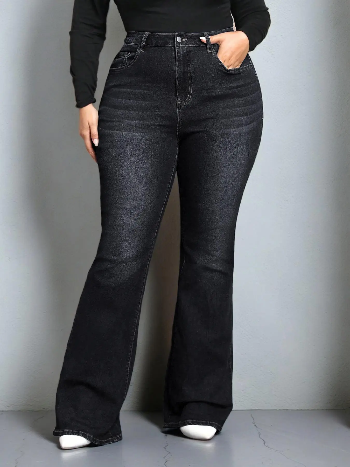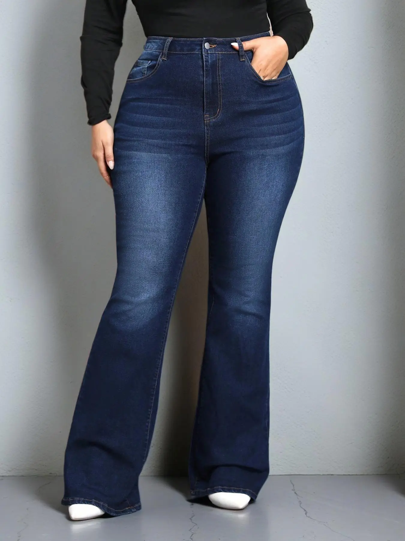 These jeans are the fantastic! They are true to size but super stretchy so they fit all my curves. Secure at the waist without a belt, yet very flattering. The color is also that perfect dark wash for jean. Curvy girl friendly.