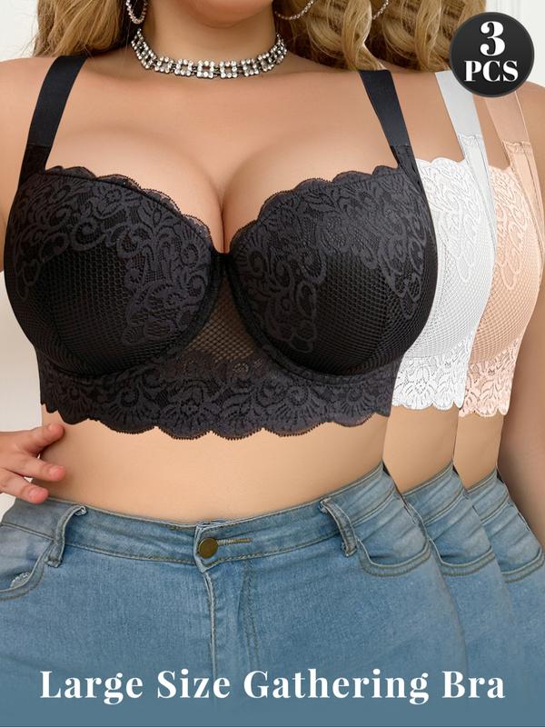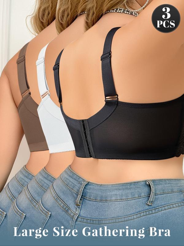 3Pce Plus Size Bras for Women Bra Supportive Underwire Bra Full Coverage Bra Push Up Lingerie Anti Sagging Bra Comfort Sexy Bra Simple Elegant Everyday Bra Halloween Clothes Sports Bras for women Back To School