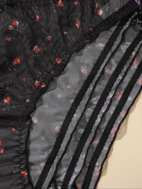 【Plus Size】 Floral Print Panty, Breathable Comfortable Panties for Daily Wear, Women's Underwear for All Seasons, Fashion Comfy Underwear