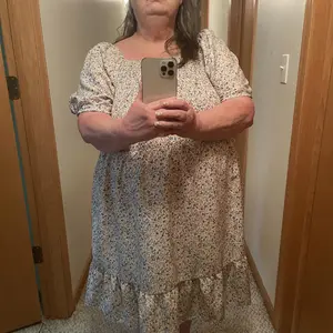 Nice sundress for a sunny day runs a little bit big, 1x but could have gone a size smaller. Light and airy material lifts in even a light breeze which I like but others may prefer to wear shorts or panties underneath.