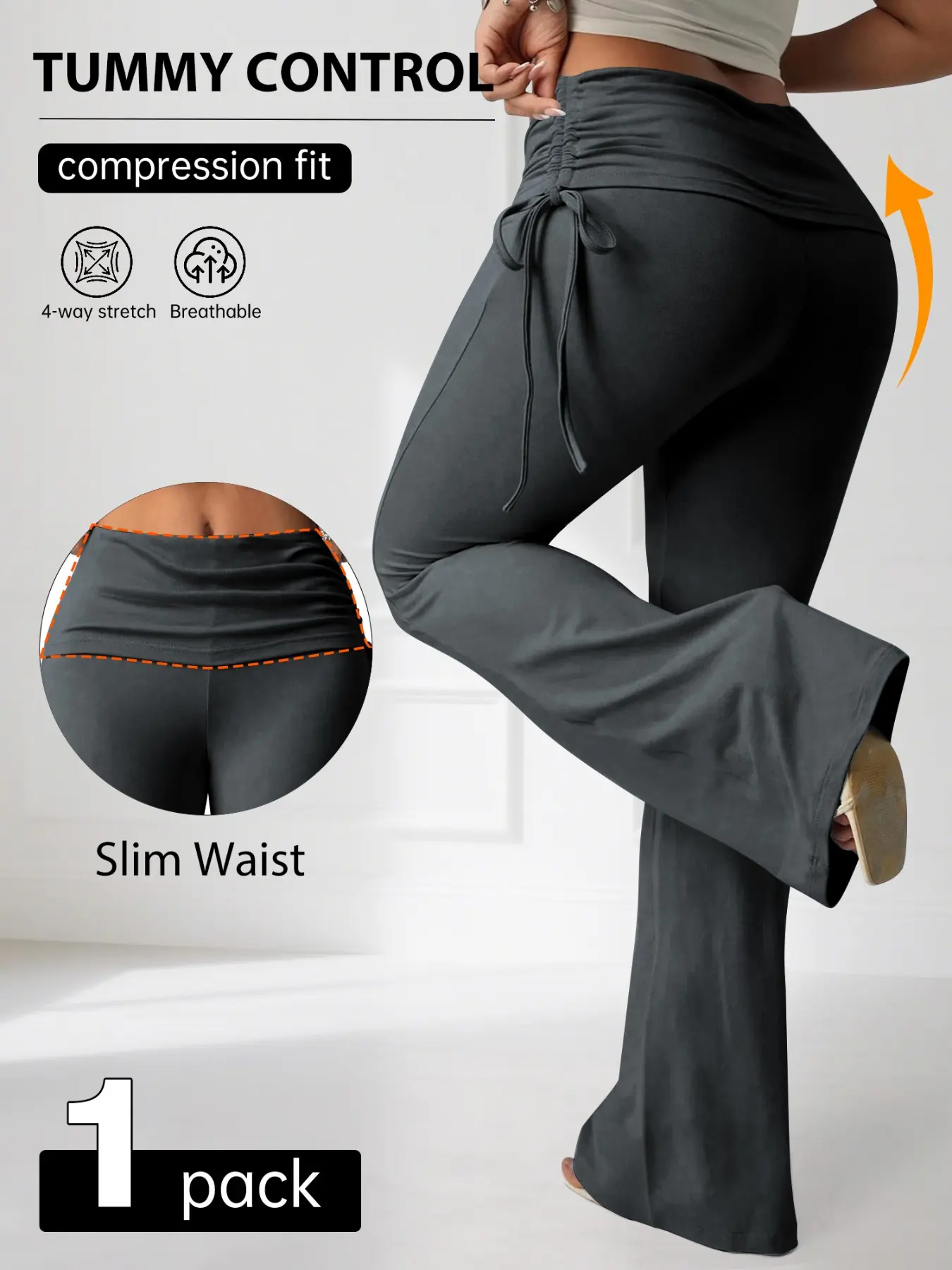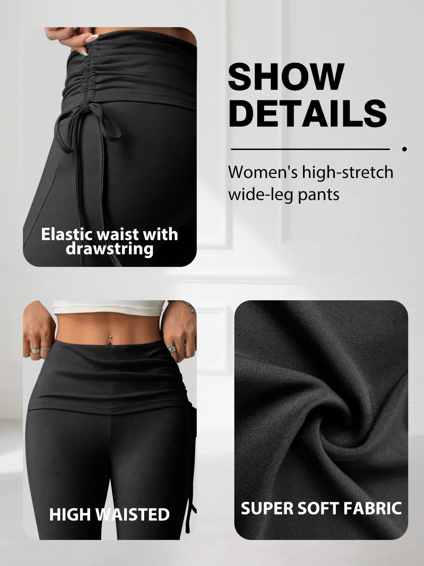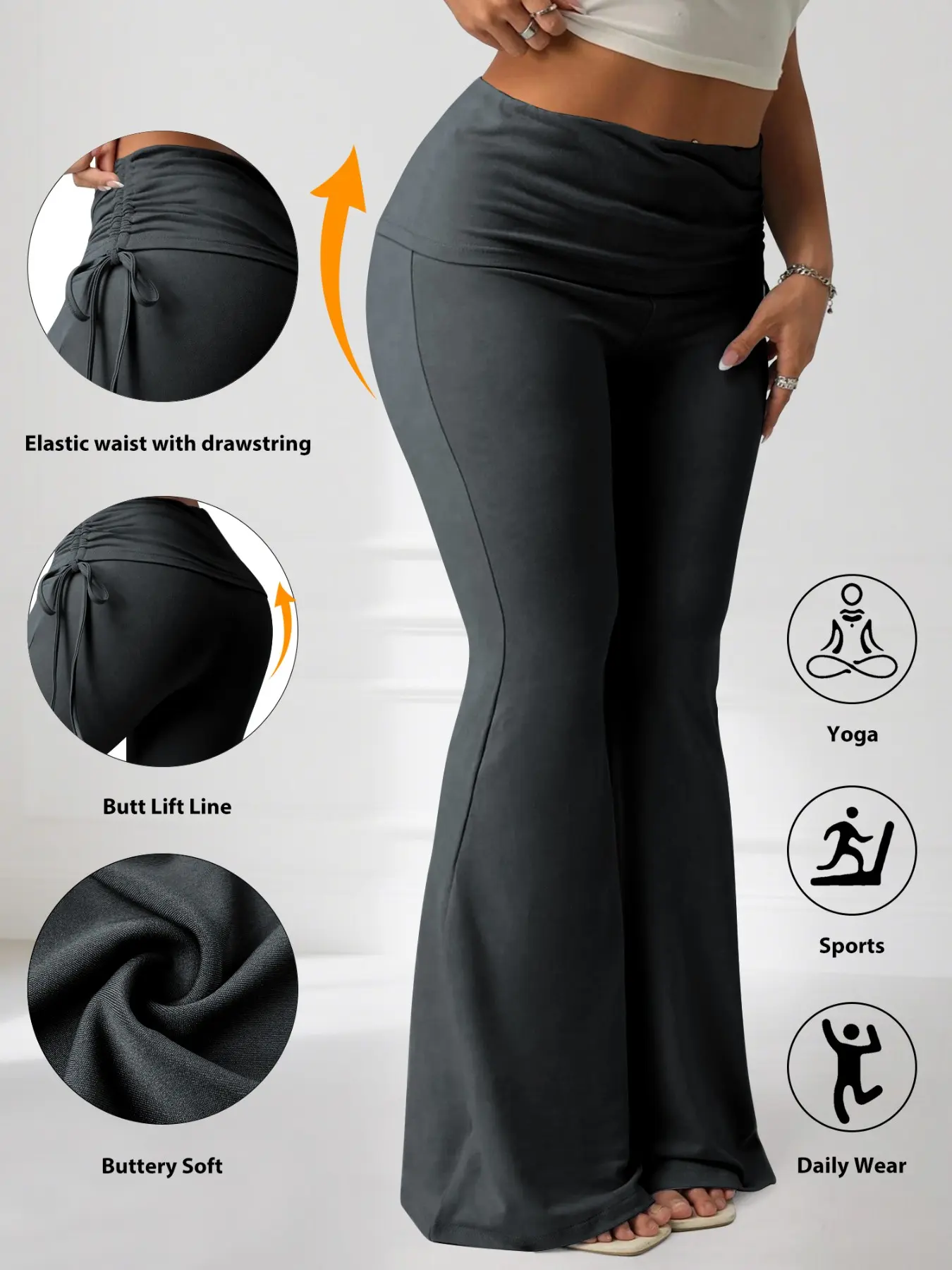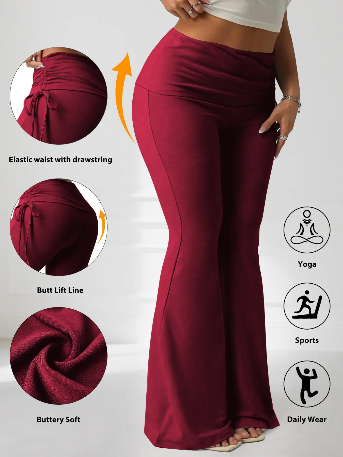 Plus Size High Waist Flare Pants, Back Pleated Butt Lifting Design, Slim Fit Elasticity, Sexy Tight-Fit, Y2K Street Fashion Women's Pants
