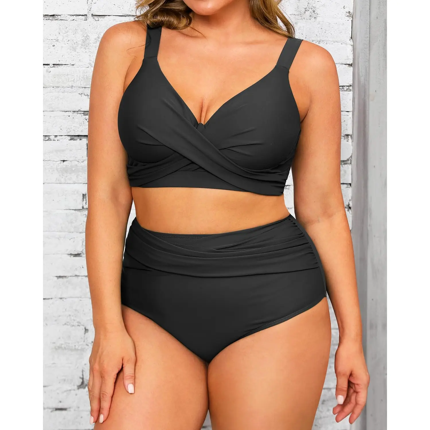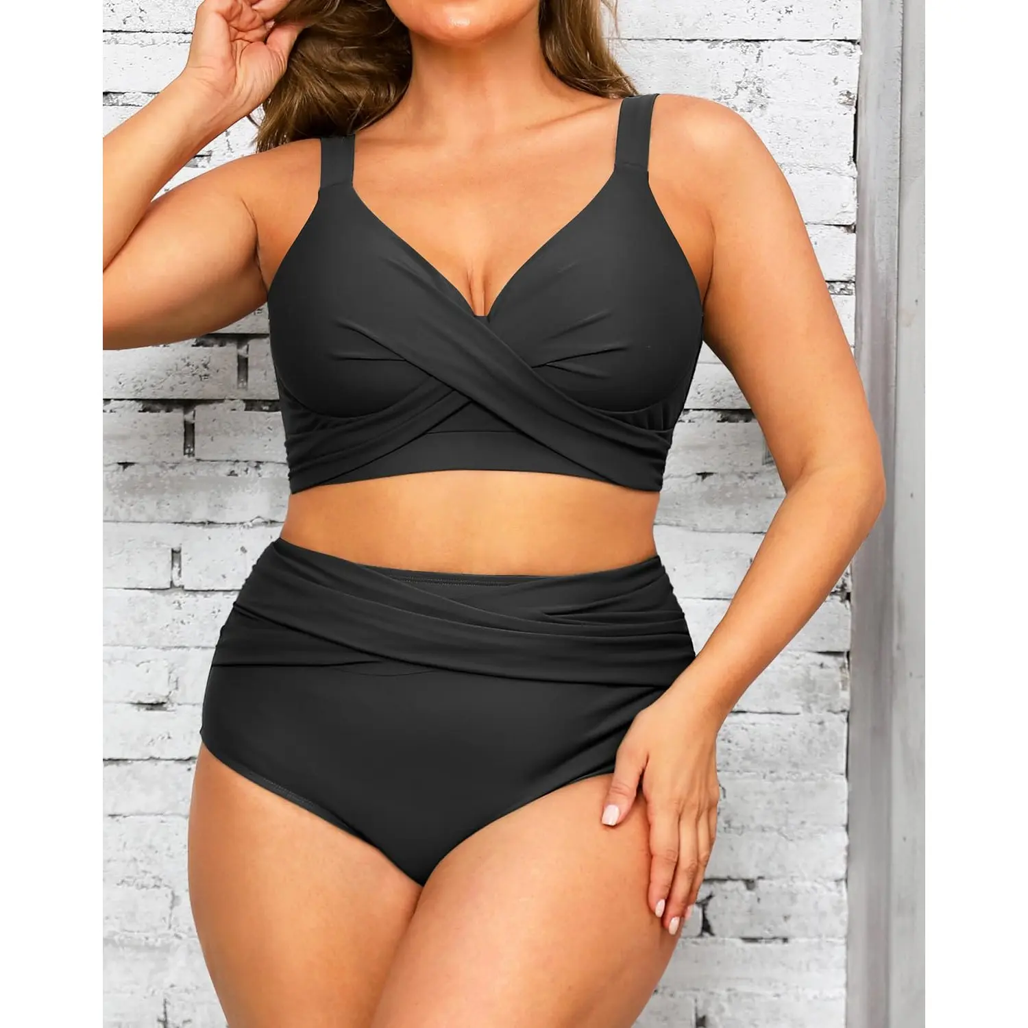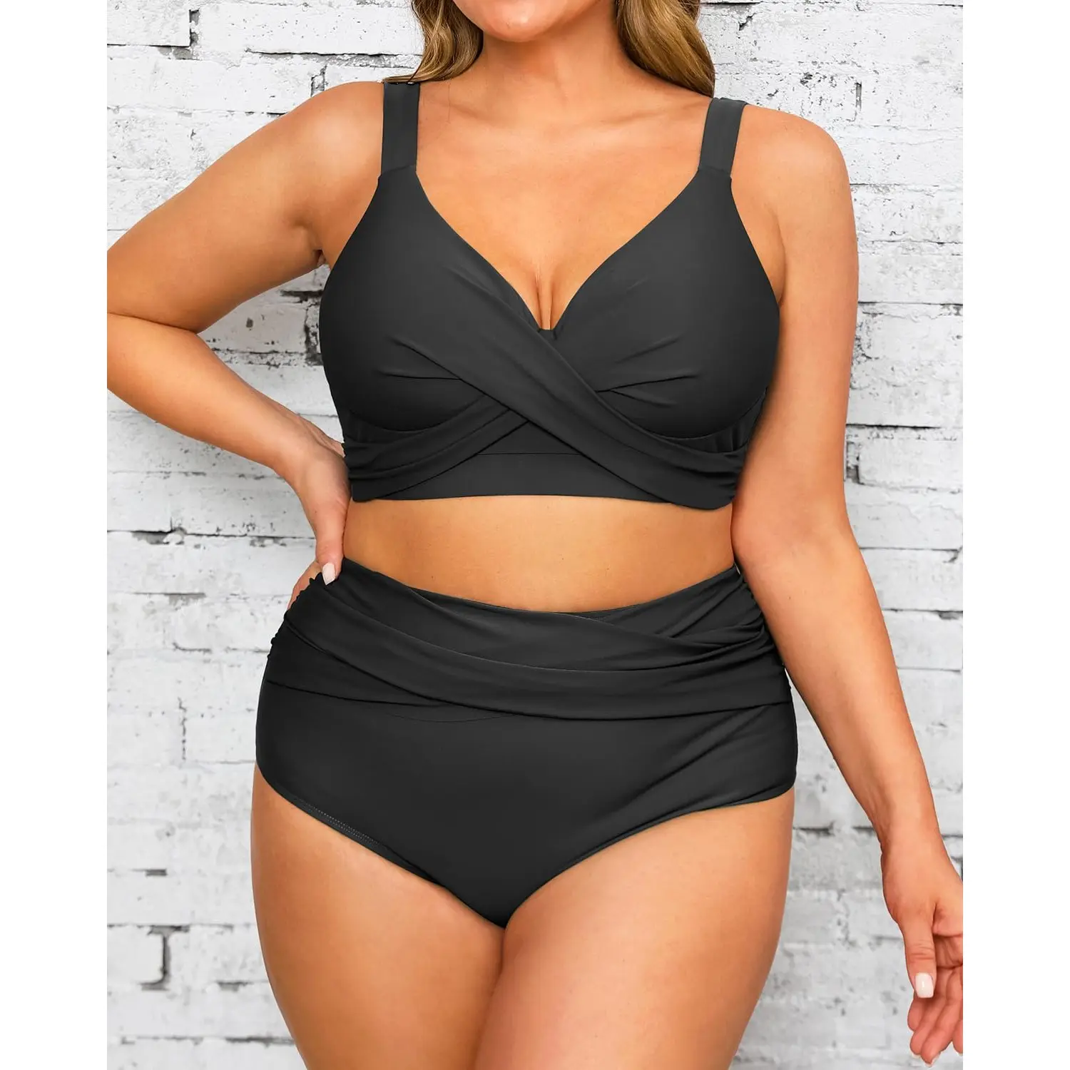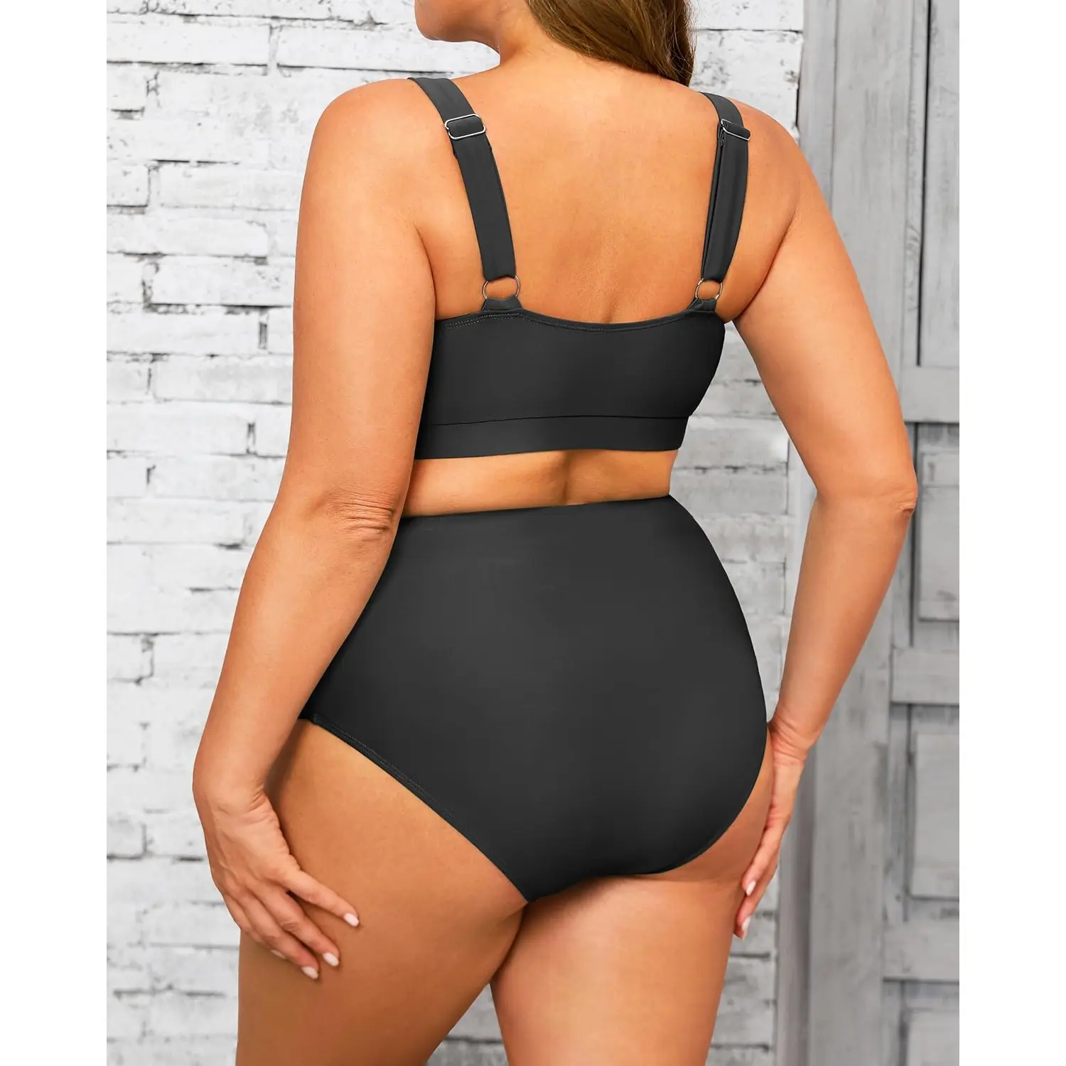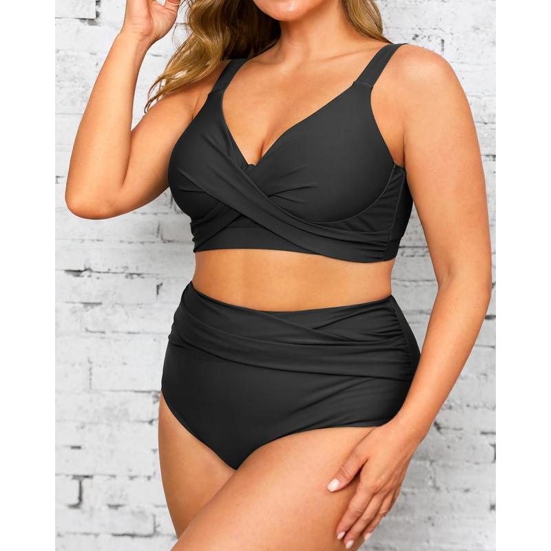 ·Plus Size Two Piece Swimsuit: This cute plus-size bikini features a twist front bikini top and a high waisted bikini bottom.The colorblock design adds a touch of uniqueness and fashion.