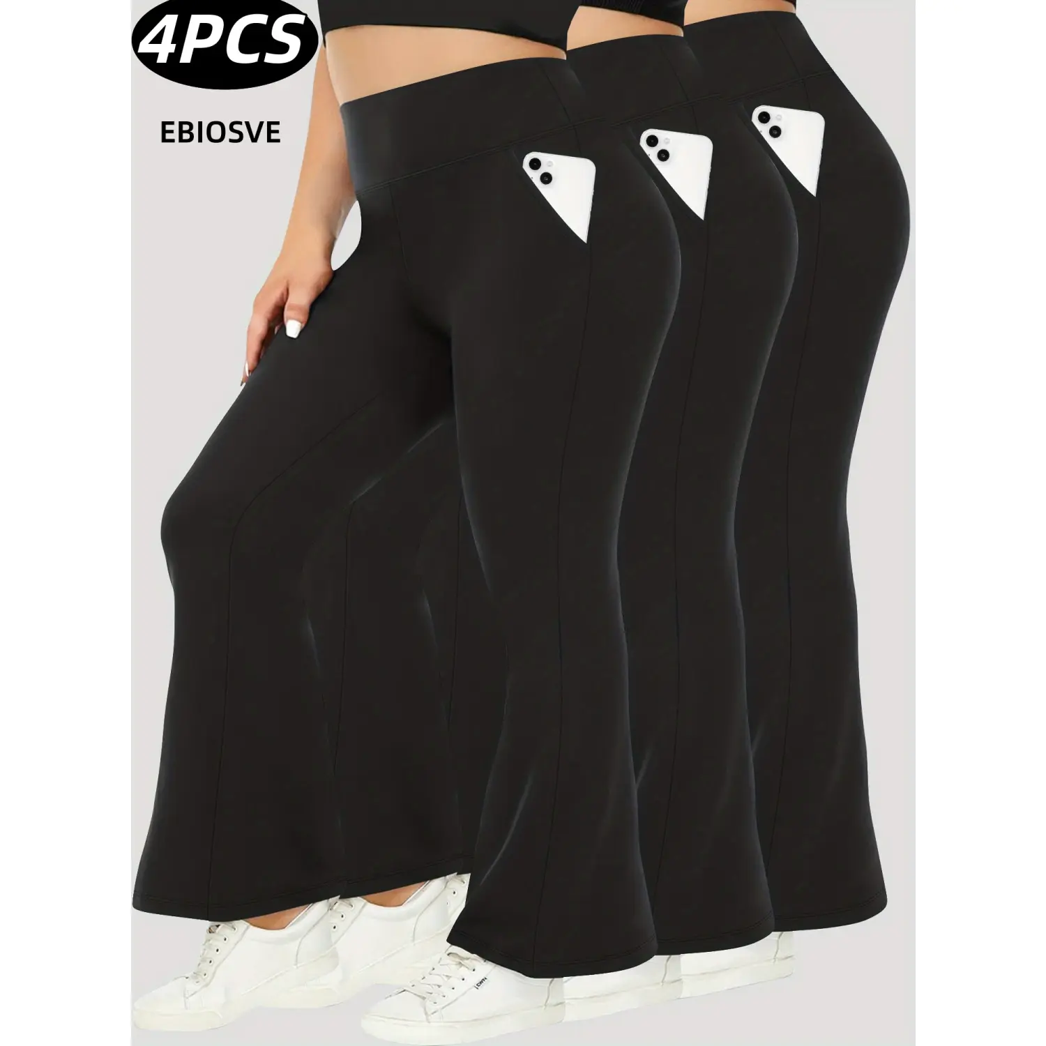 These plus-size high-waisted flared pants come in a 3-piece set. They feature diagonal pockets, adding both style and functionality. The pants are comfortable and stretchy, perfect for all seasons. New autumn style, these wide-leg pants are ideal for casual wear. They offer a hip-lifting effect, enhancing your look. Suitable for aerobics and loose flared pants, these pants are versatile for various activities.