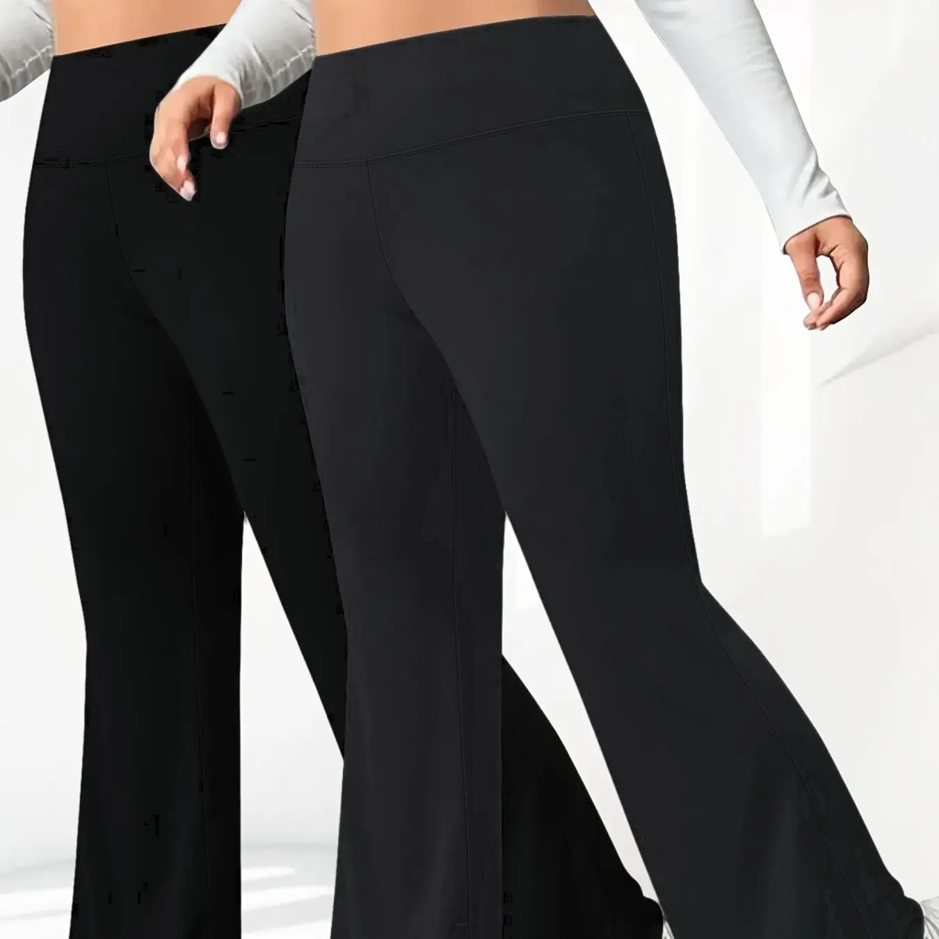 Plus Size, Large Size - 2pcs Of Large-sized Solid-color Flared Pants, Elegant High-waisted Pants, Suitable for All Seasons, High-Waisted Elastic Slim Fit Pants, Side Pockets, Suitable for Office, Casual, Yoga, Travel Wear, Tummy Control And Shaping