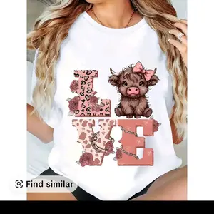 5. Plus Size Highland Cow Women's Shirt, Casual Chic - Casual Crew Neck Short Sleeve For Daily Wear, Casual Wear, Seasonal Fashion, Comfortable Material, Party Apparel | Fun Graphic Shirt | Comfortable Fit plus size top