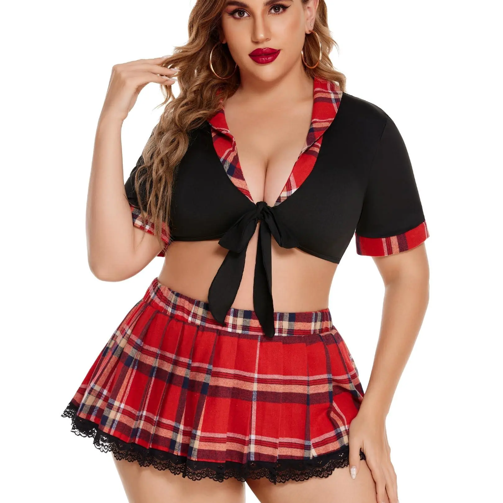 Plus size school girl lingerie is made of 90% Polyester,10% Spandex. High quality, soft and comfortable to wear.