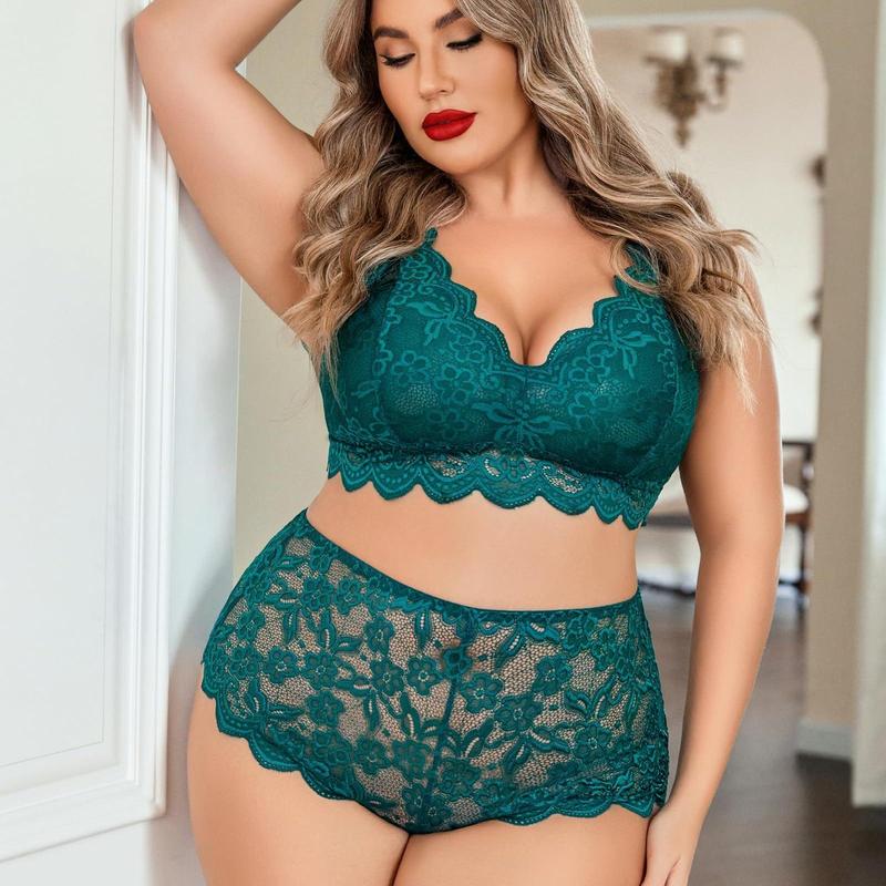 ❤Design: This plus size lingerie set features deep V-neck, scallop trim lace bra with hook and eye closure, non-underwired cups for comfortable, extended wear, show your attractive curve; high waisted panty is made of exquisite lace and soft elastic lace fabric.