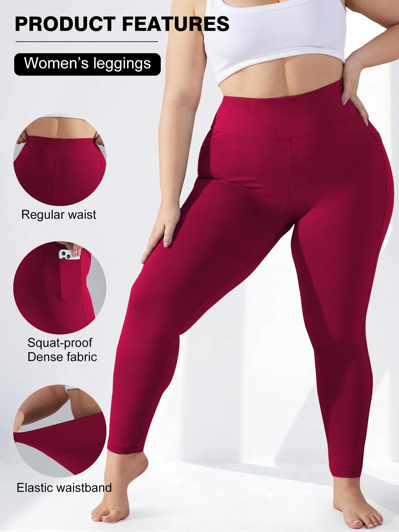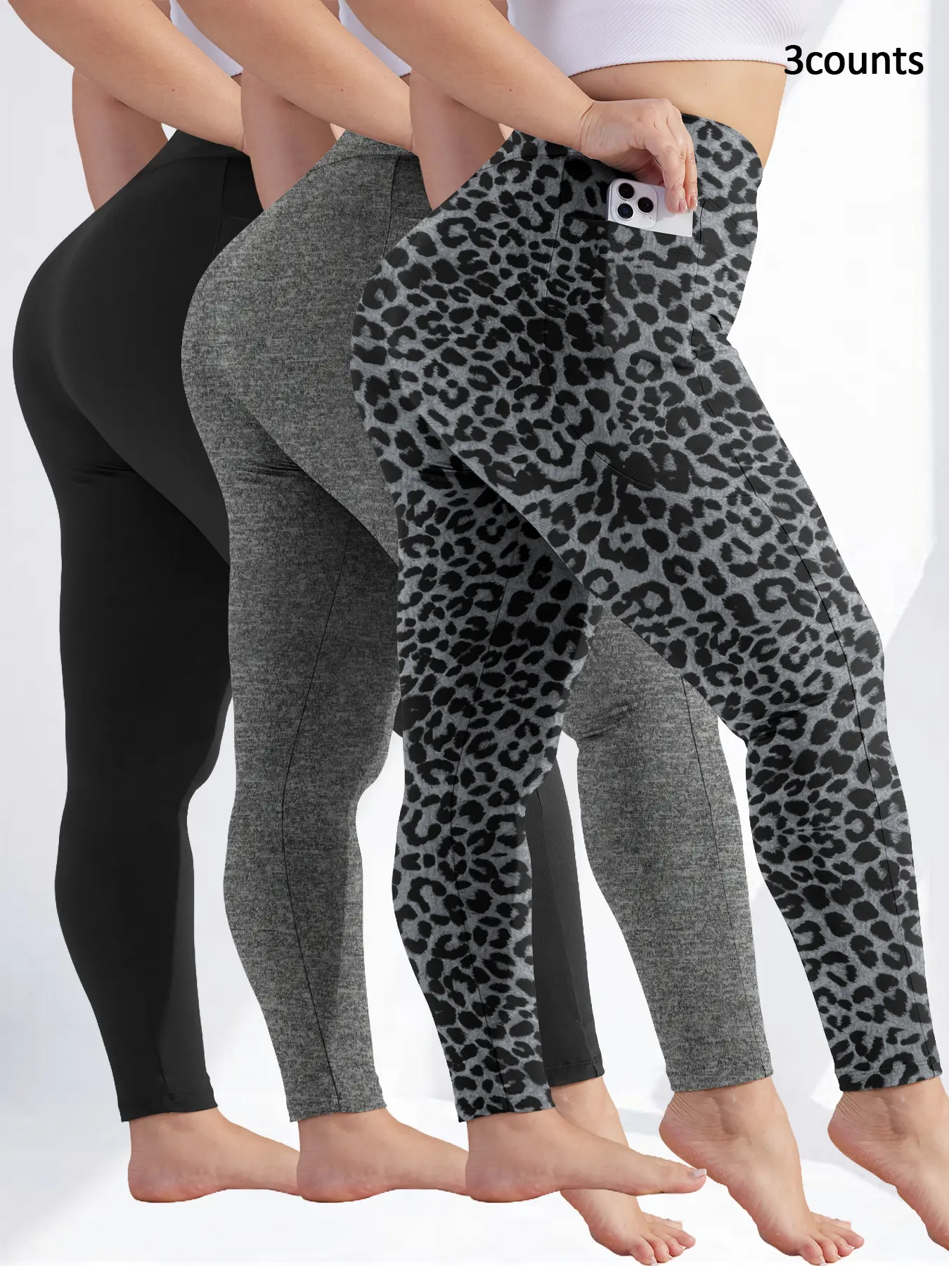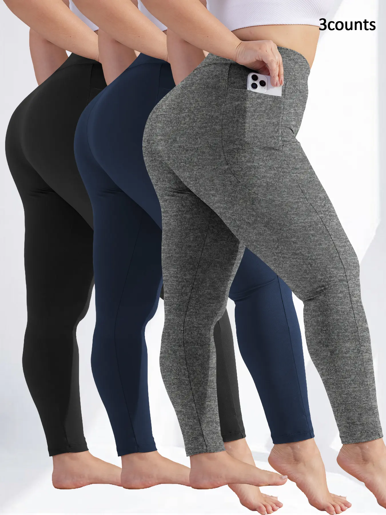 5. Plus Size Solid High Waist Fitted Leggings with Pockets, High Elastic Four-Way Stretch, All-Day Comfort Fit, 3-Pack Fashionable & Versatile Leggings