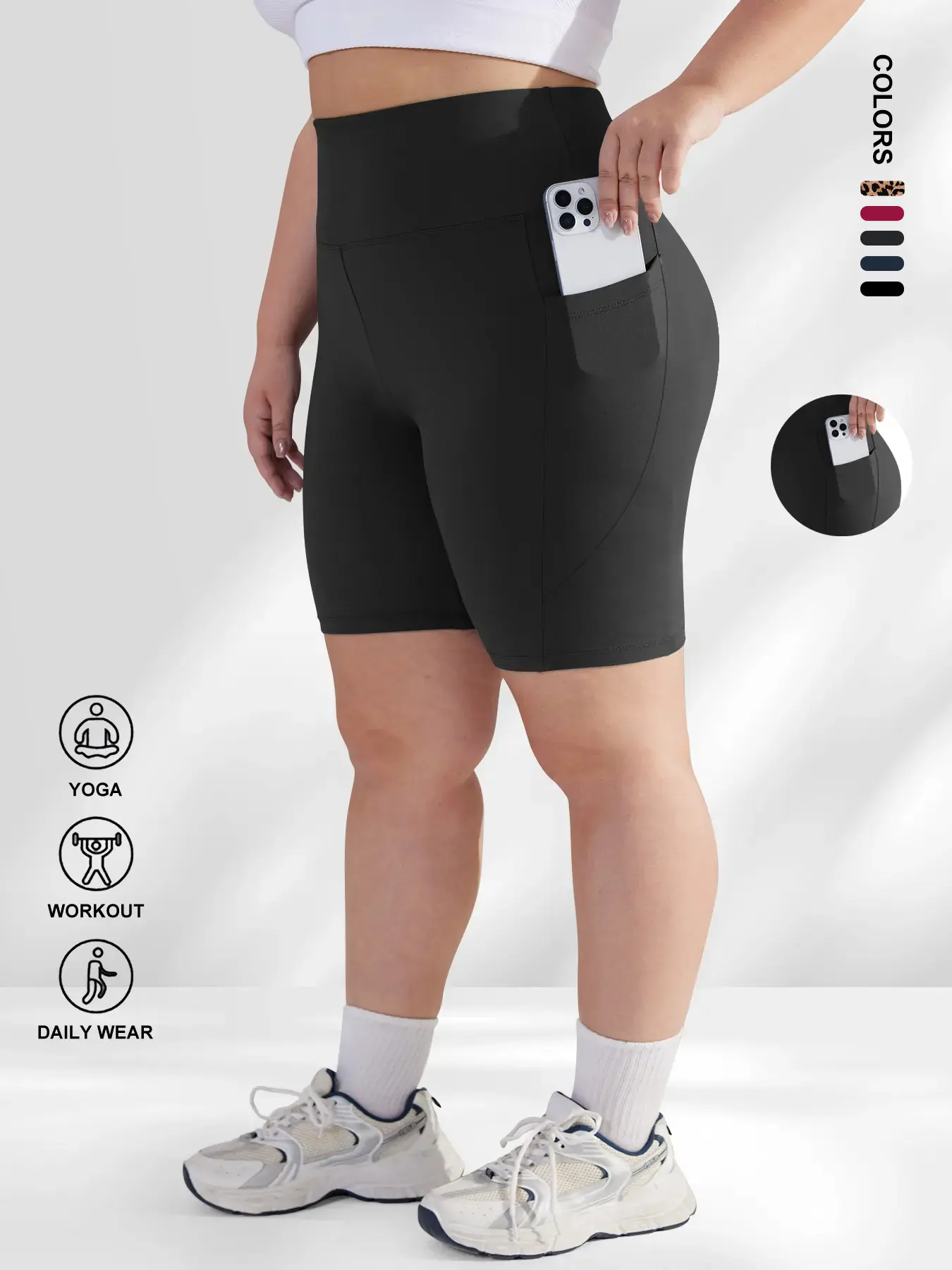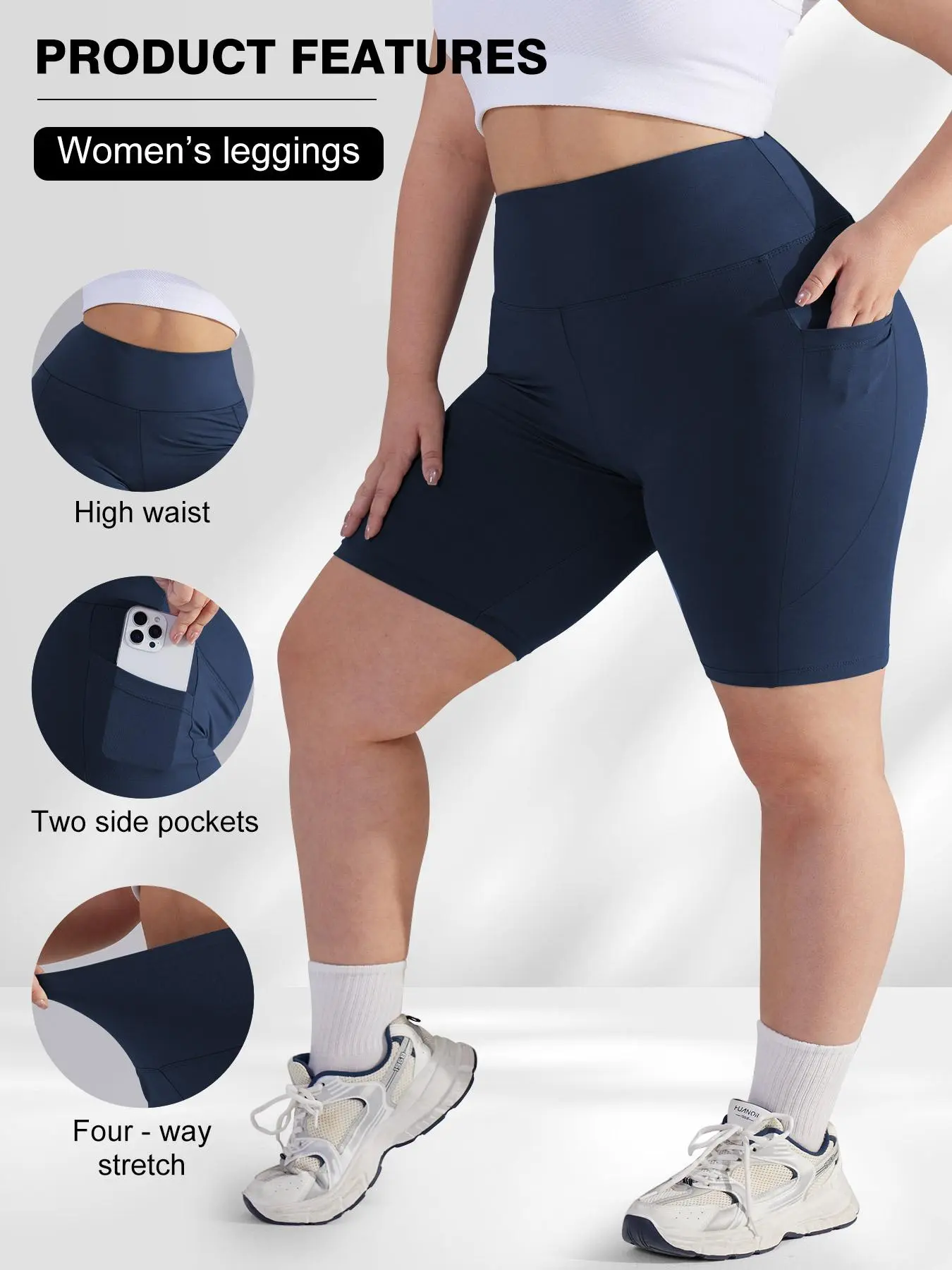 Plus Size High-Waisted Biker Shorts with Pockets.🔥🚴‍♀️ #tiktok #amazon #leggings #plussizefashion #yogapants
