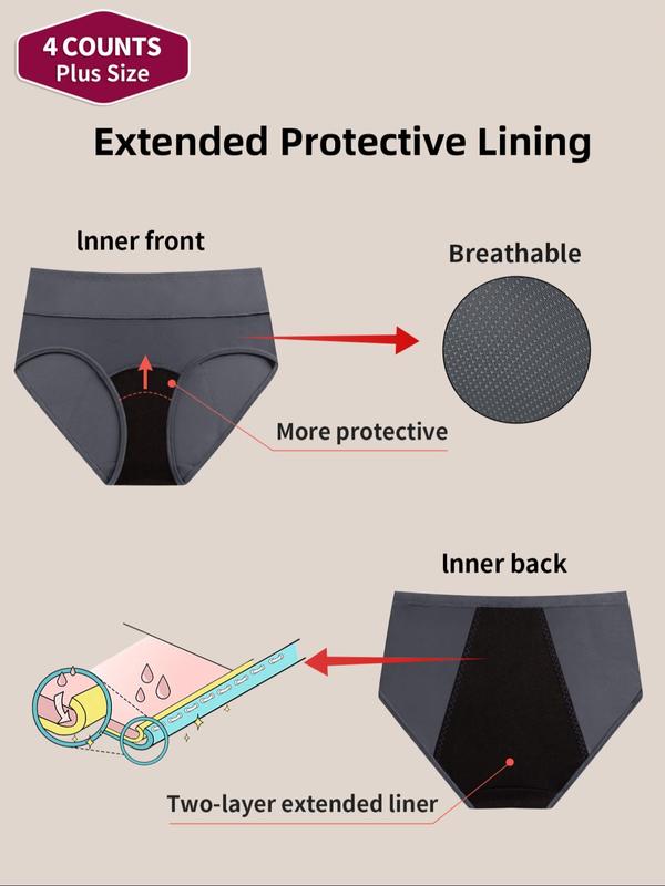 5. 【Plus Size】 Letter Print Period Panty, Breathable Comfortable Period Panty for Daily Wear, Women's Underwear for All Seasons