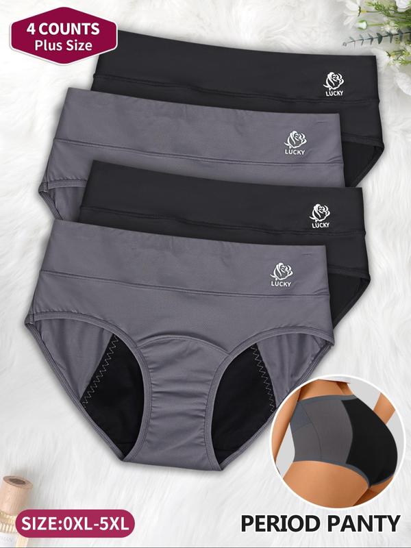 【Plus Size】 Letter Print Period Panty, Breathable Comfortable Period Panty for Daily Wear, Women's Underwear for All Seasons