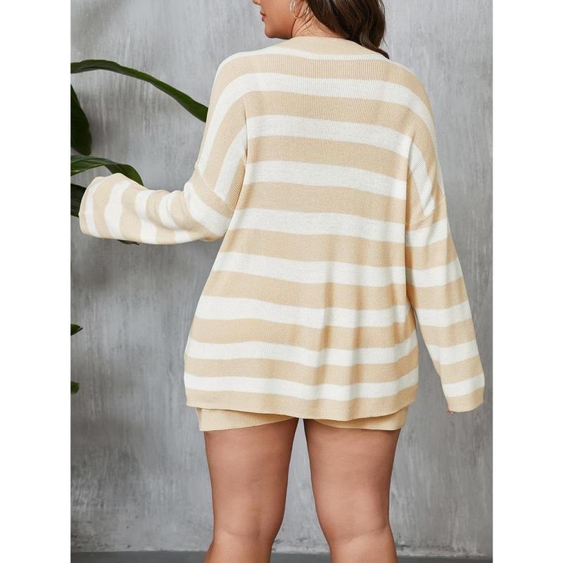 ·Lounge Sets Feature: The striped sweater set designed with an oversized sweater, classic pullover crew neck, batwing long sleeves tops designed with chic dropped shoulders, loose fit shorts with elastic high waist, providing a stylish and cozy fit