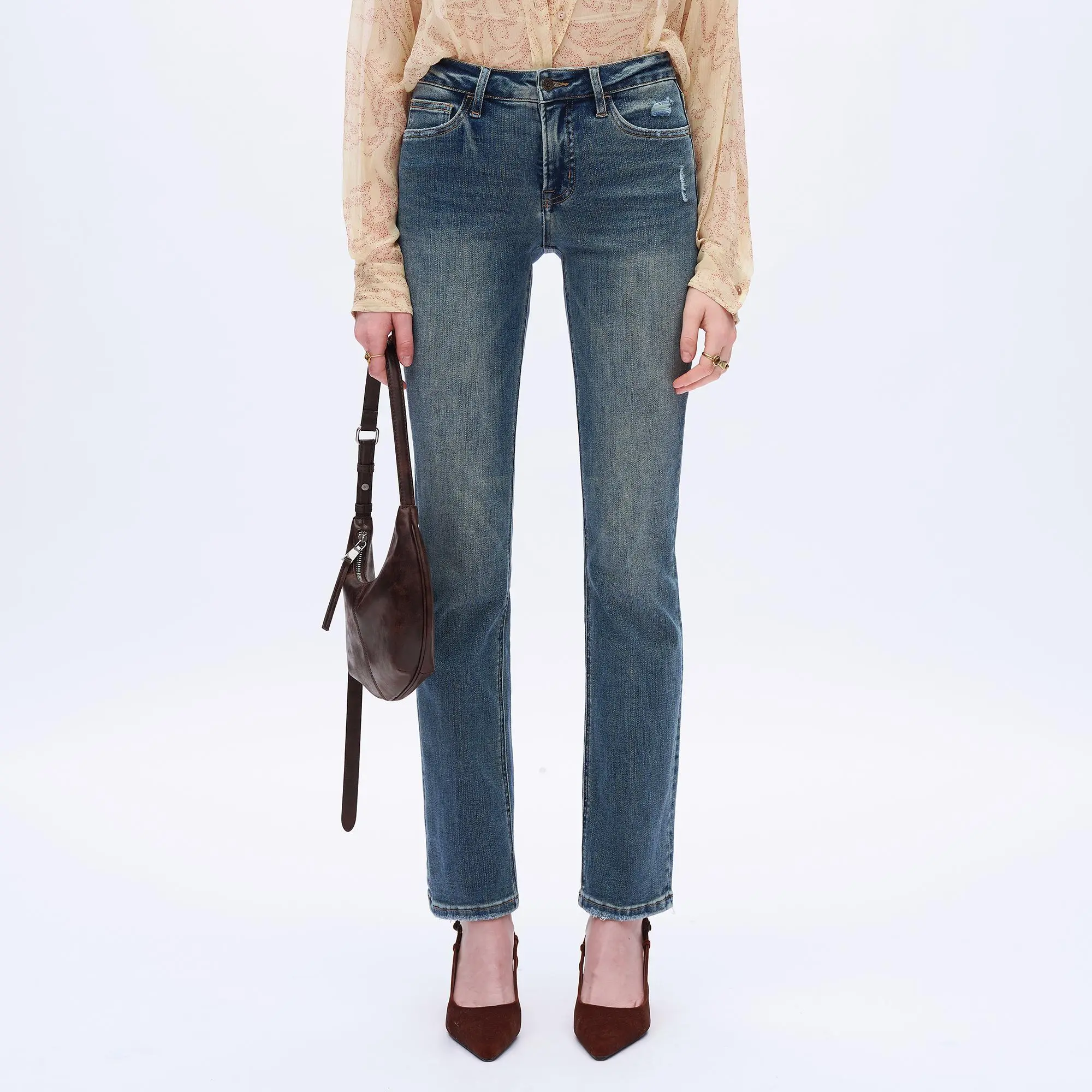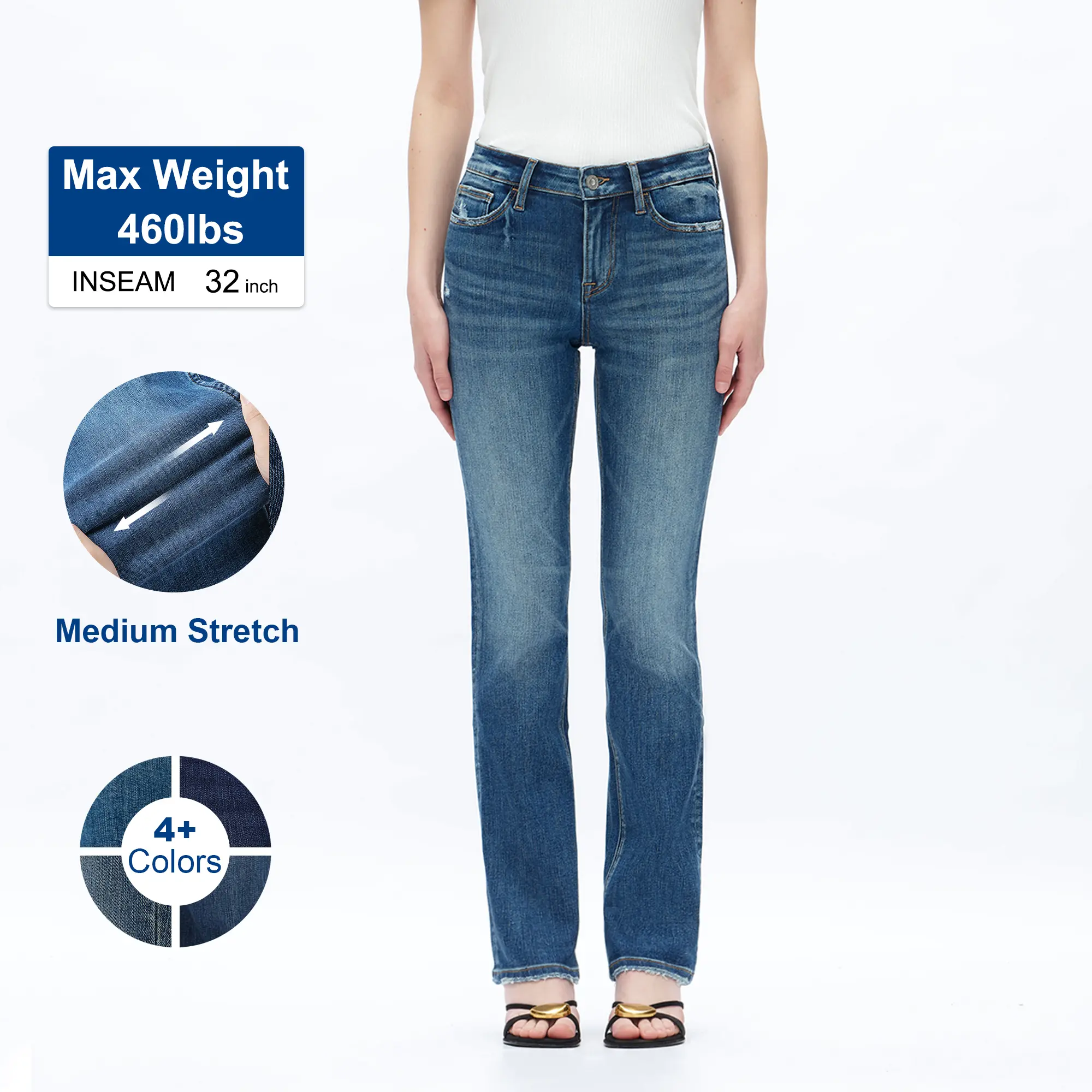Loved these jeans. I am 5ft 7in 265 and went with 16. Perfect fit and length. Minimal distressing and perfect color.