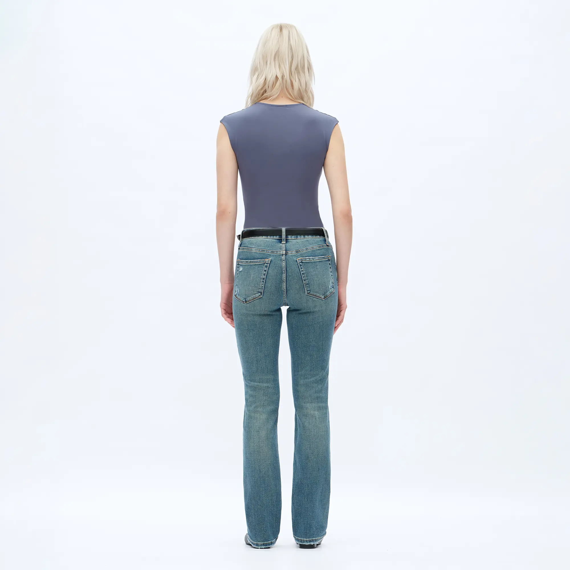 These are really nice jeans. Very comfortable, good shape i am 5ā7ā and flex between 175-180lbs. They fit a little boyfriend-y-slouchy if you have thinner legs. I like that they feel like they have shape control but arenāt tight on the tummy.