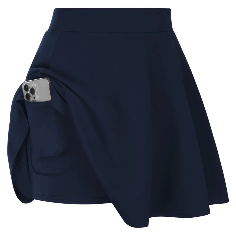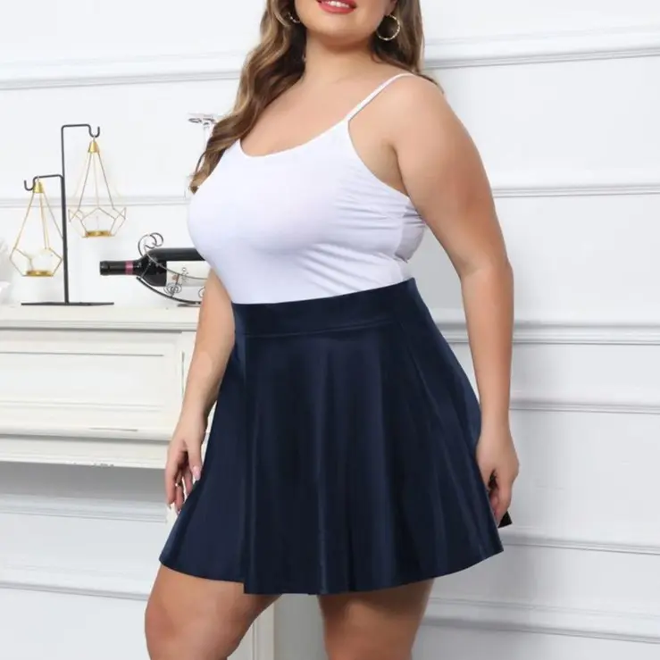 Women's Plus Size Skirt Pleated Skater Skirt with Inner Short and Pocket