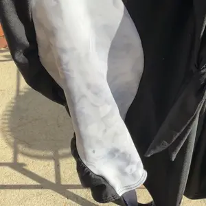 The black dye of the swimsuit ran into the white parts.