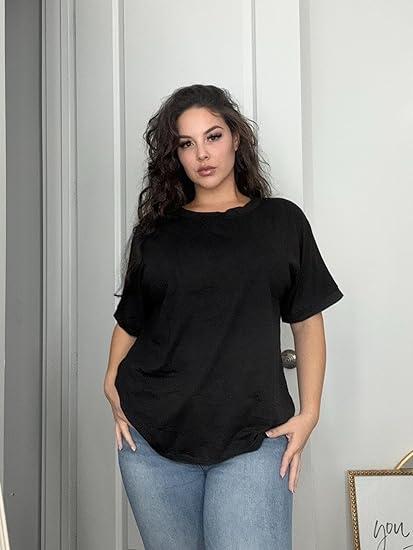 ·【Classic Design】:The plus size T-shirts for women is crew neck and rolled sleeves design,The Oversized T-shirt is a basic, casual shirt with a clean and simple look that is an important element in the fashion world.