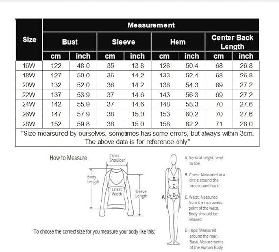 ·【Size Note】: We use American standard size. The main model is 67.71 inches tall, weighs 187.4 pounds, bust 40.15 inches, waist 31.5 inches, hip 45.45 inches and wears 16W. XL(US 14-16), 2XL(US 18-20), 3XL(US 22-24), 4XL(US 26-28).