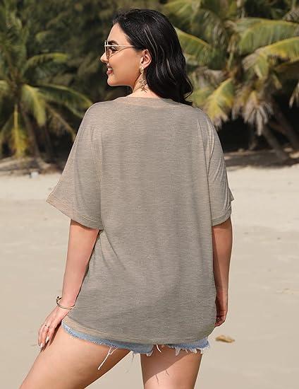 ·【Material】: The plus size T-shirts for women are made of 76% Polyester19% Viscose5% Spandex, and Short Sleeves Tees provides a comfortable feminine touch and cooling feel. Let you feel breathable in spring and summer.