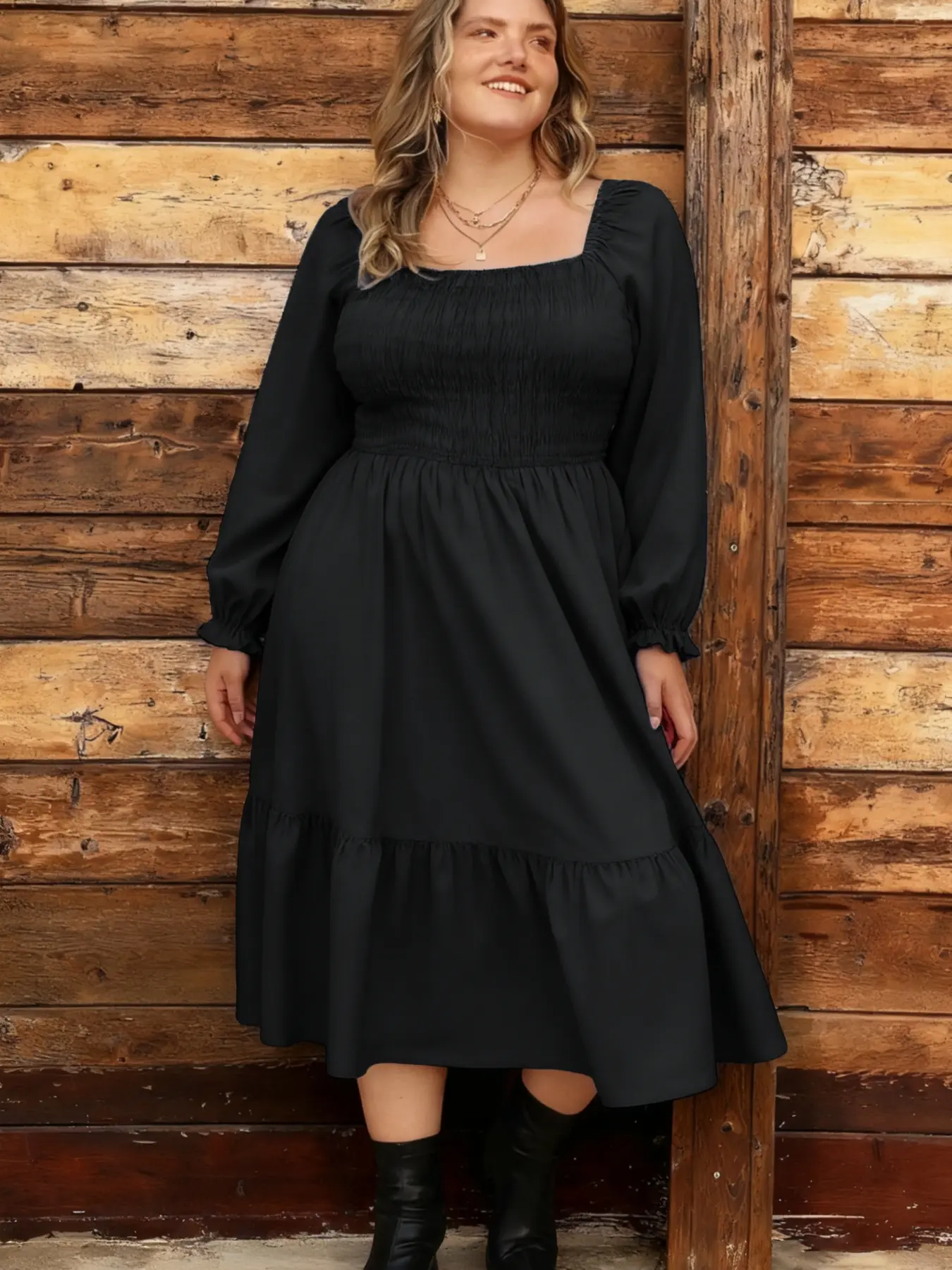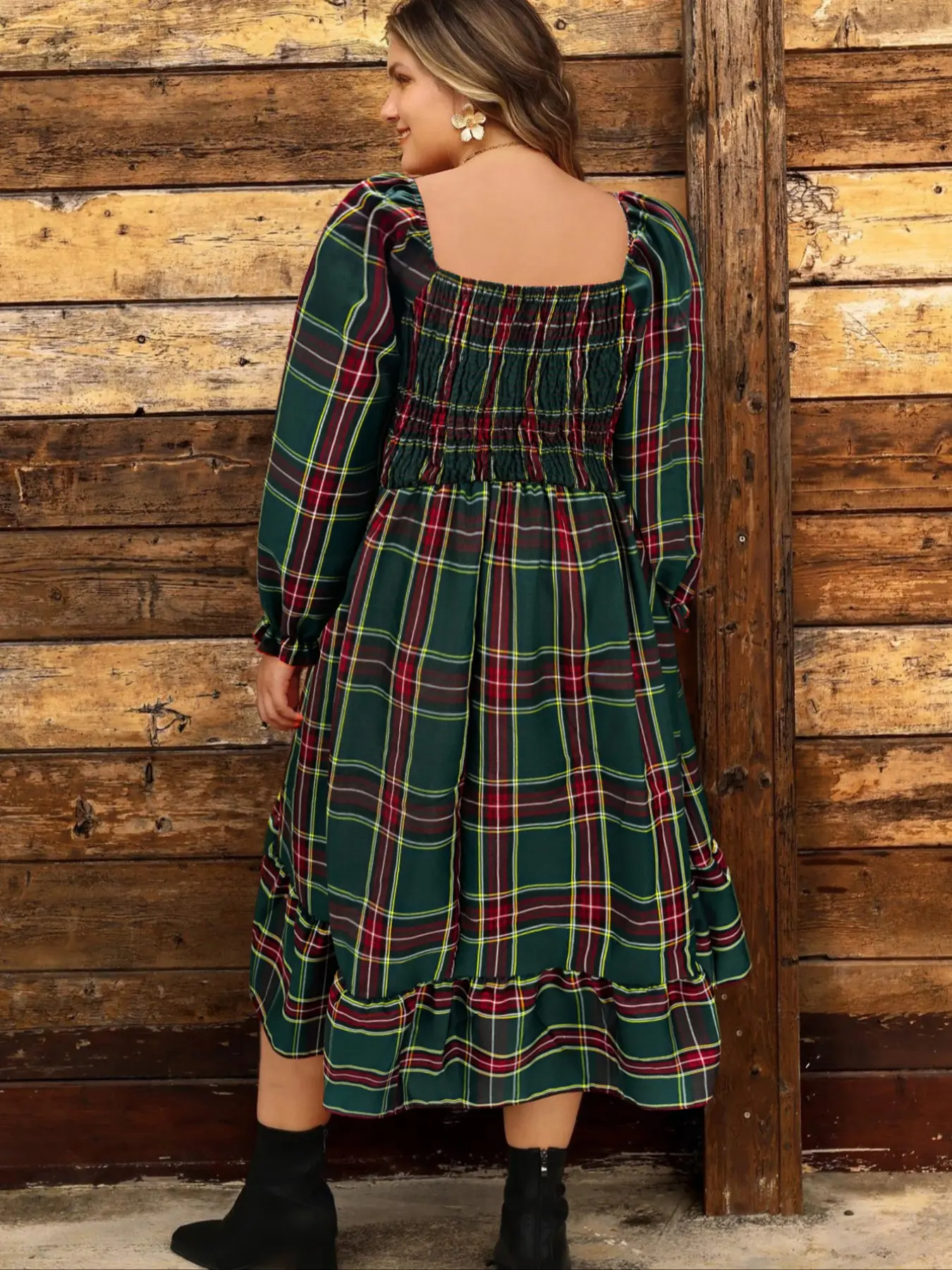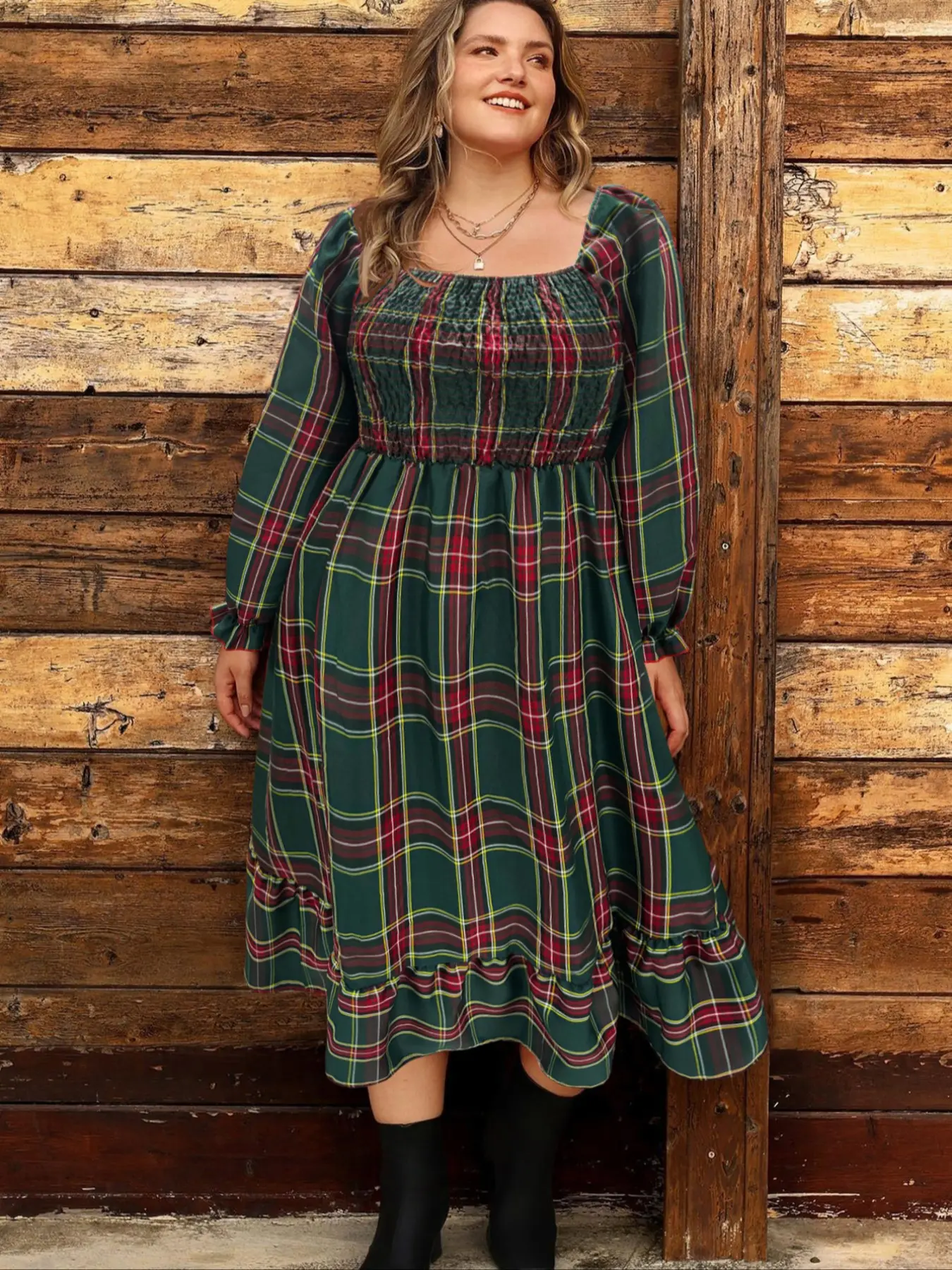 This red plaid dress is giving major holiday vibes 🎁✨ Style it with boots for the perfect Christmas-ready look! #holidayoutfit #christmasdress #plussizeholidayoutfits #holidaydress #christmasoutfit