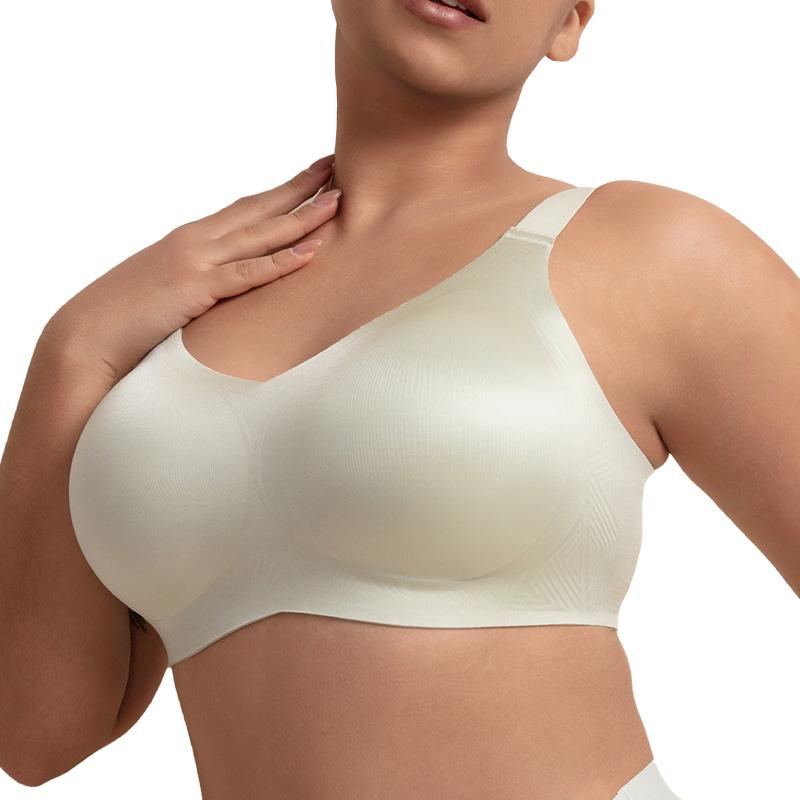 Comfelie Women Plus Size Luxury Satin Curve Pop Soft Seamless Bra No Underwire Bra Comfort Seamless Bra With Free Laundry Bag EB072