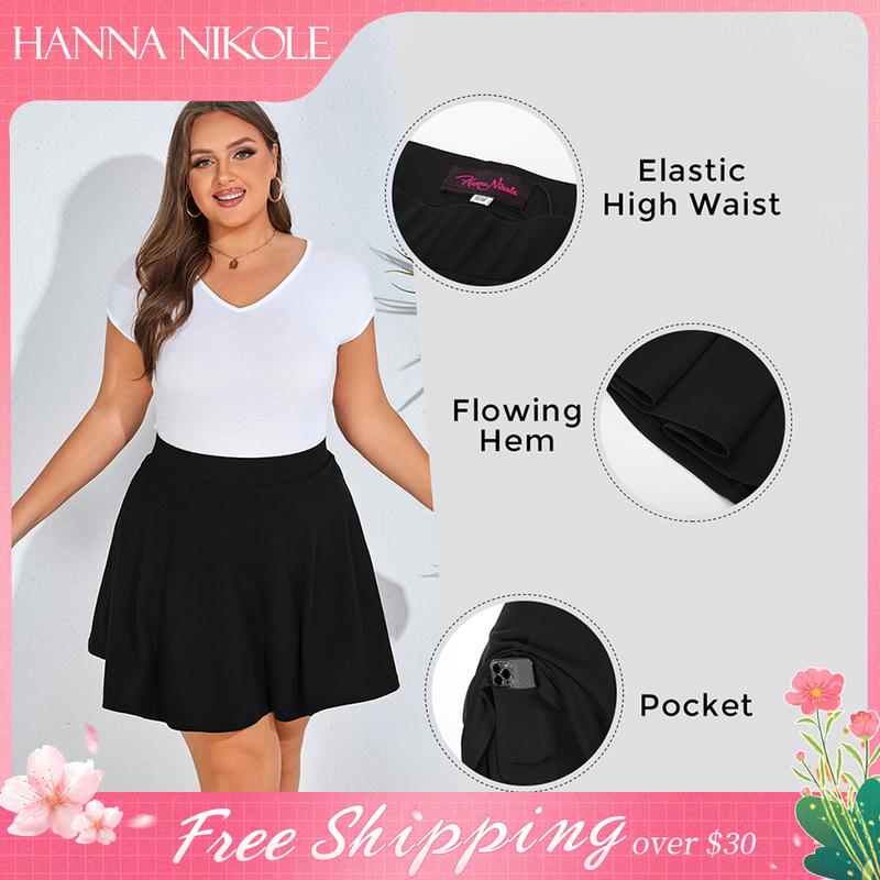 Hanna Nikole Women's Plus Size High Waisted A Line Mini Skater Skirt with Attached Shorts