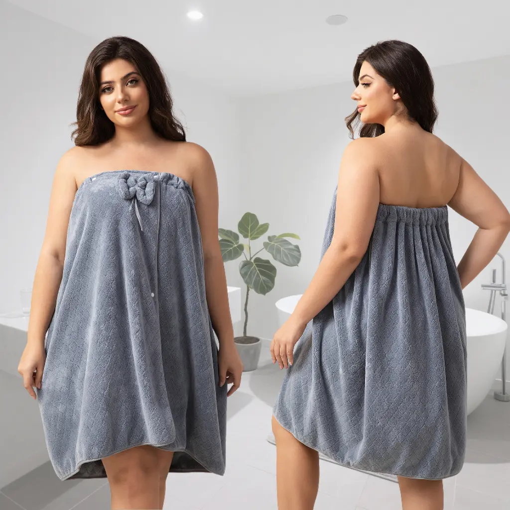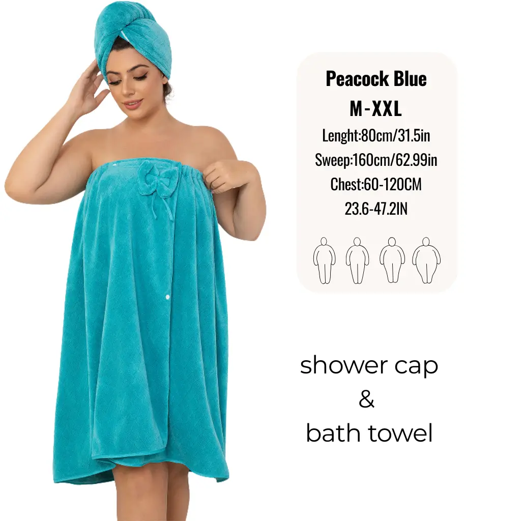 Plus - Size Bath Towel,Solid Bathrobe&Shower Cap Set,Ultra-Absorbent Bath Skirt,Cozy for Travel and Home,Great Gift Idea