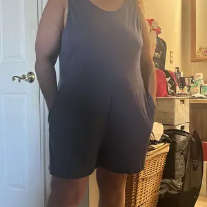 Runs big! Very comfy and cute! I live in rompers during the summer and having a thicker shoulder strap just helps keep them on and keep them very comfortable. You can’t beat the pockets or the price shipping takes a little while, but it does come from China so it’s to be expected.