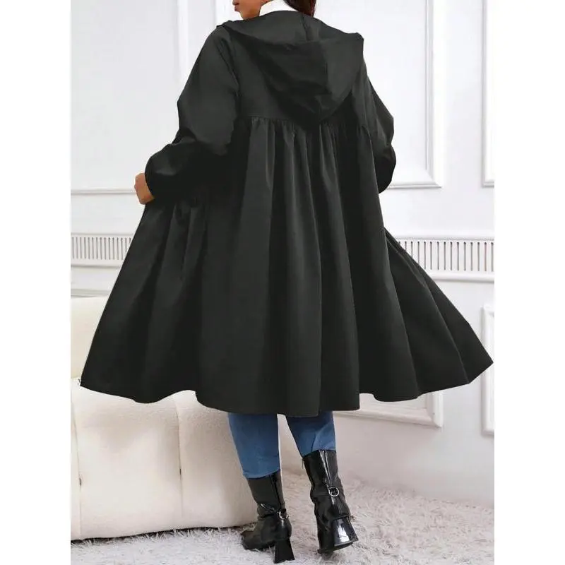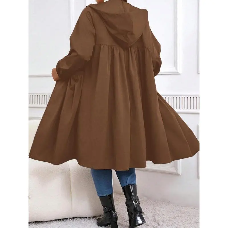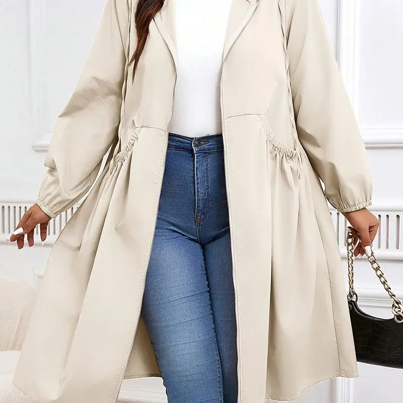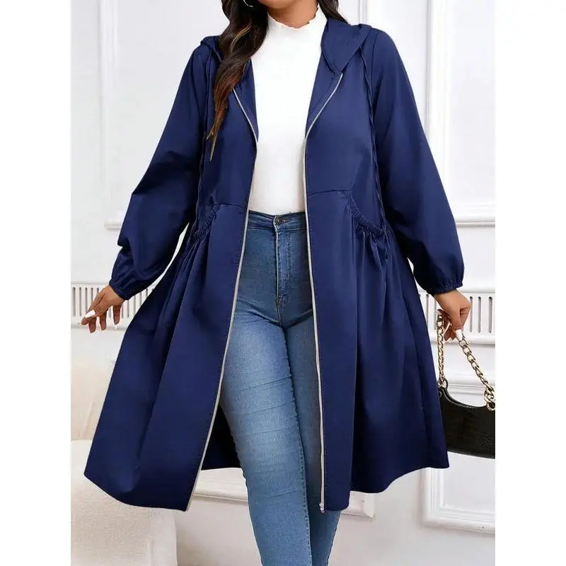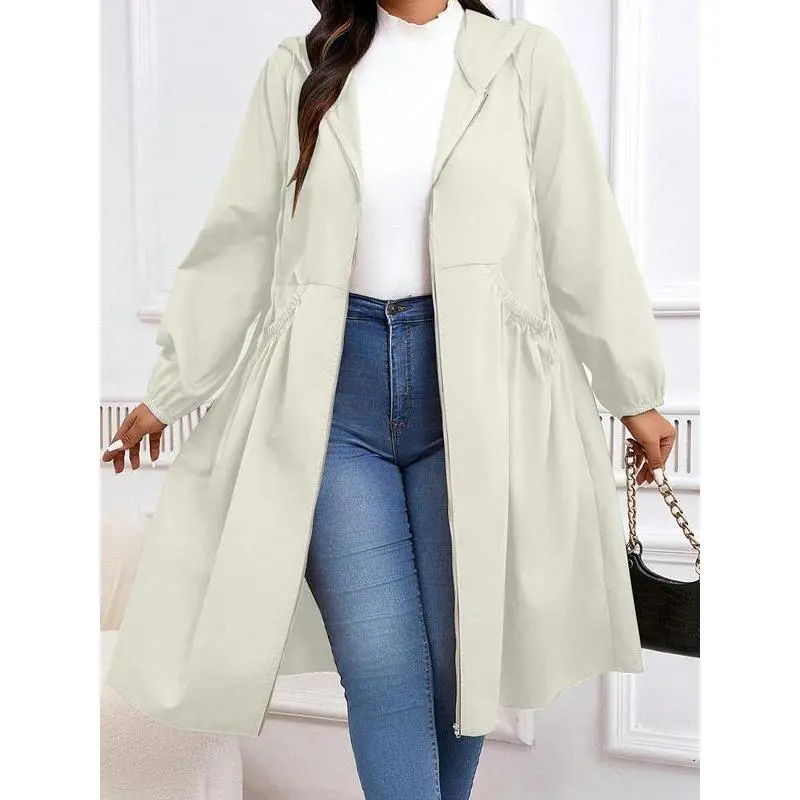 PlusSizeSolidDrawstringZipUpHoodedCoat,CasualLongSleevePocketOuterwearforFall&Winter,Women'sClothesforDailyWear??gift?? Womenswear Jackets