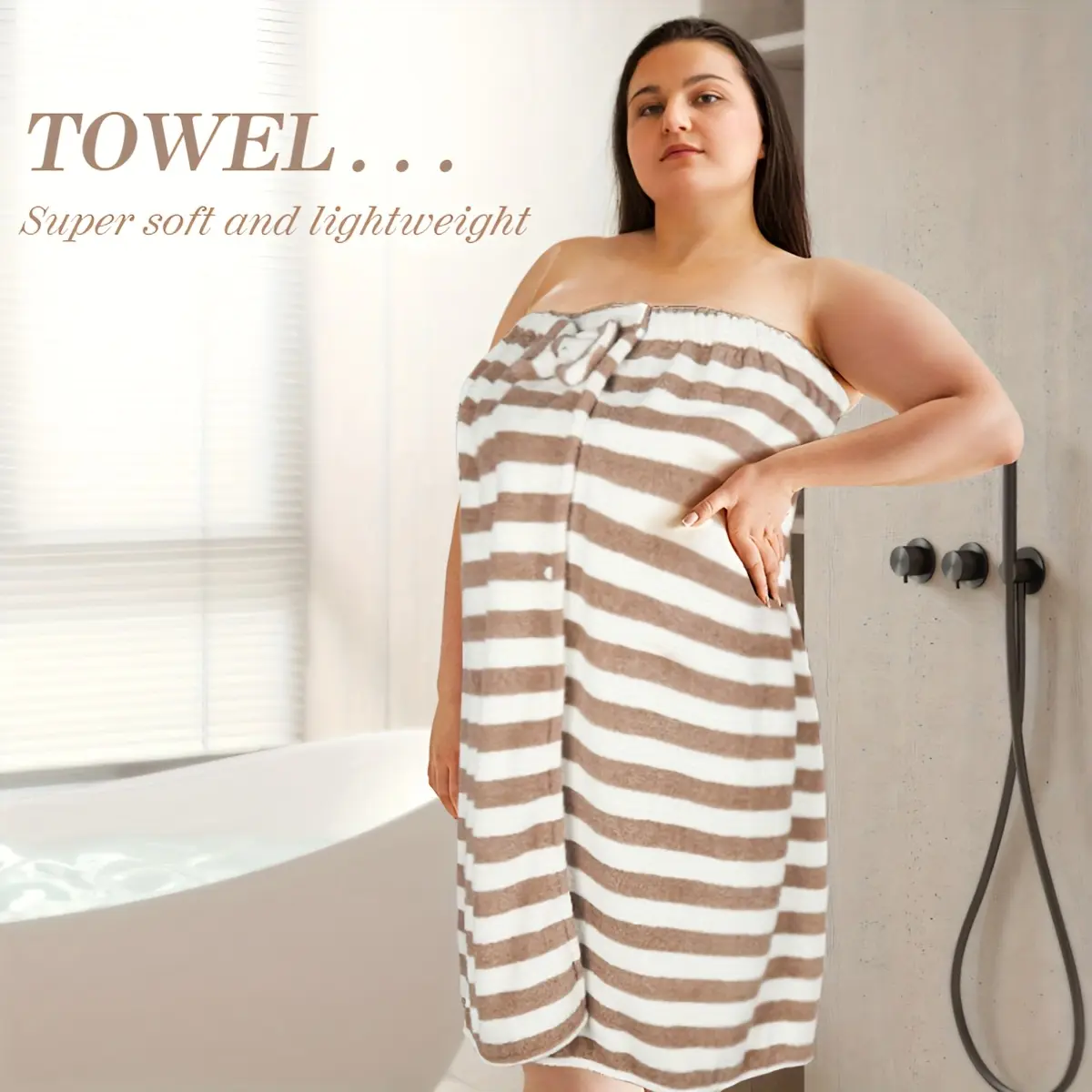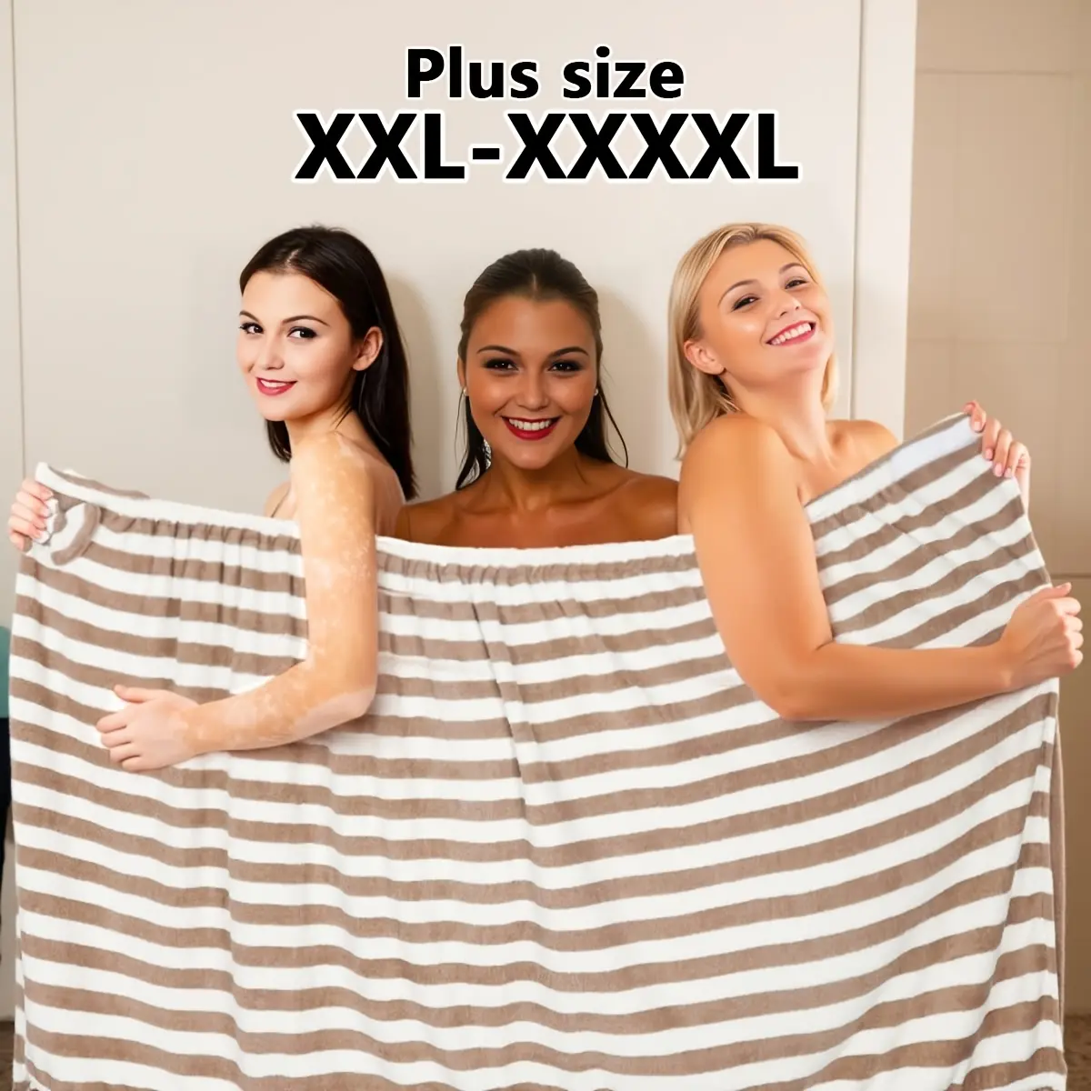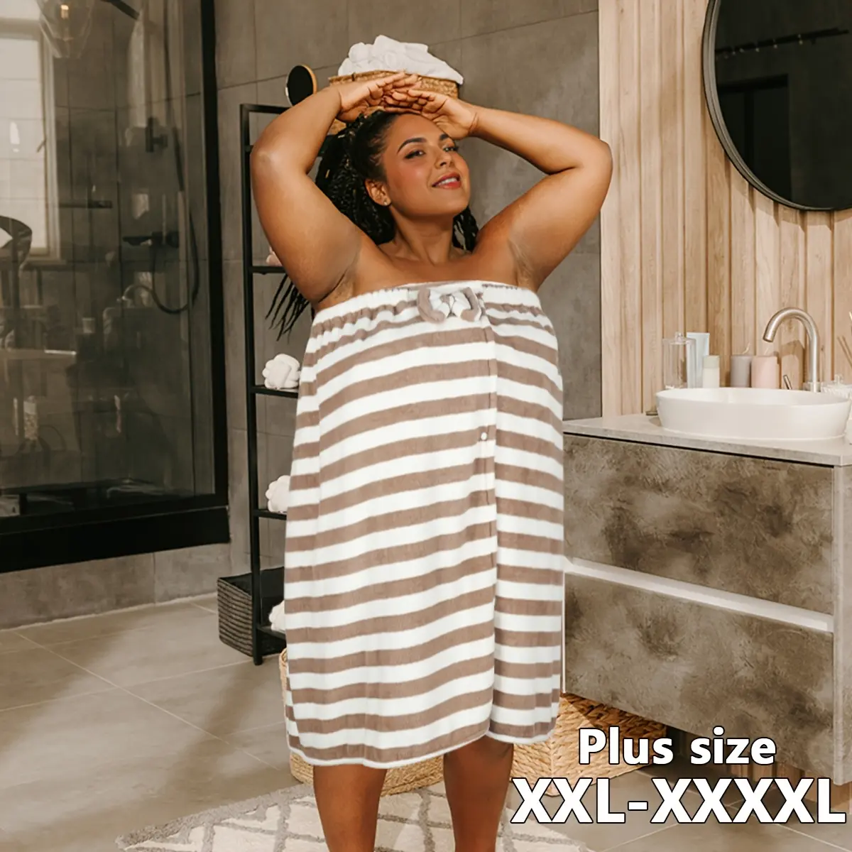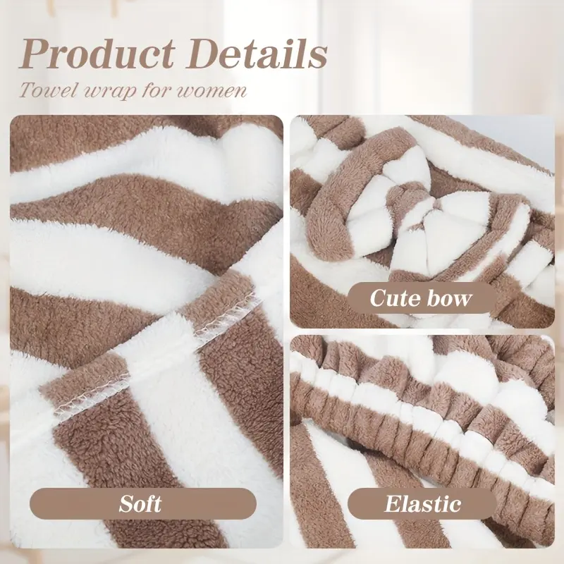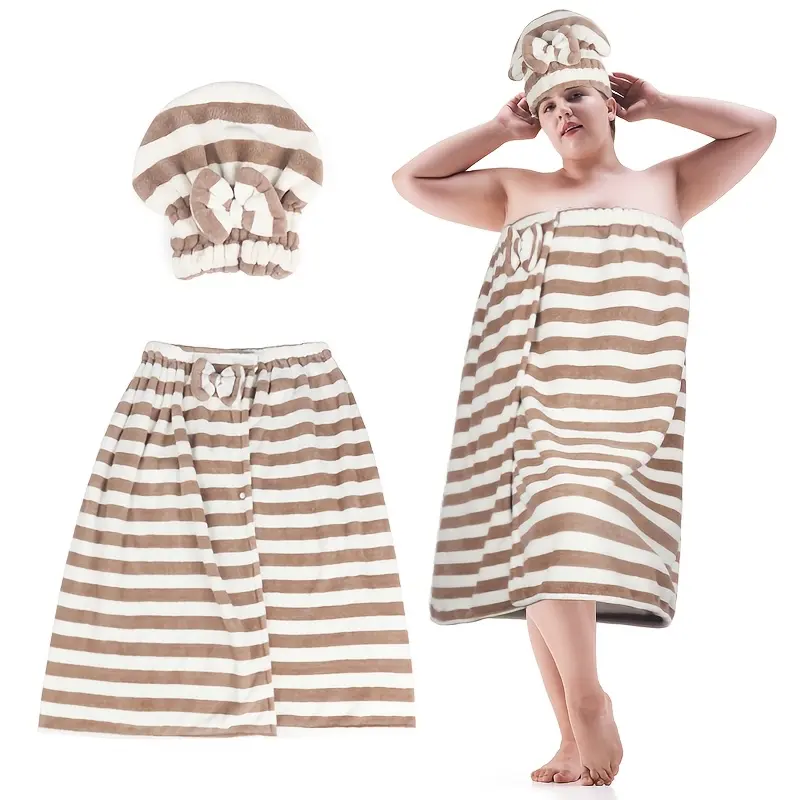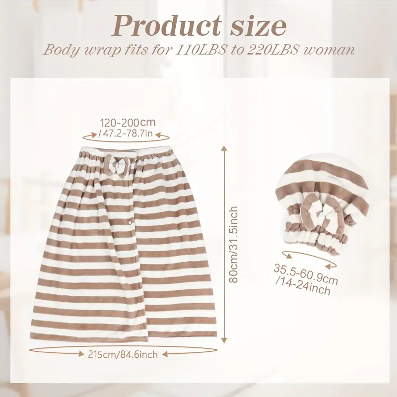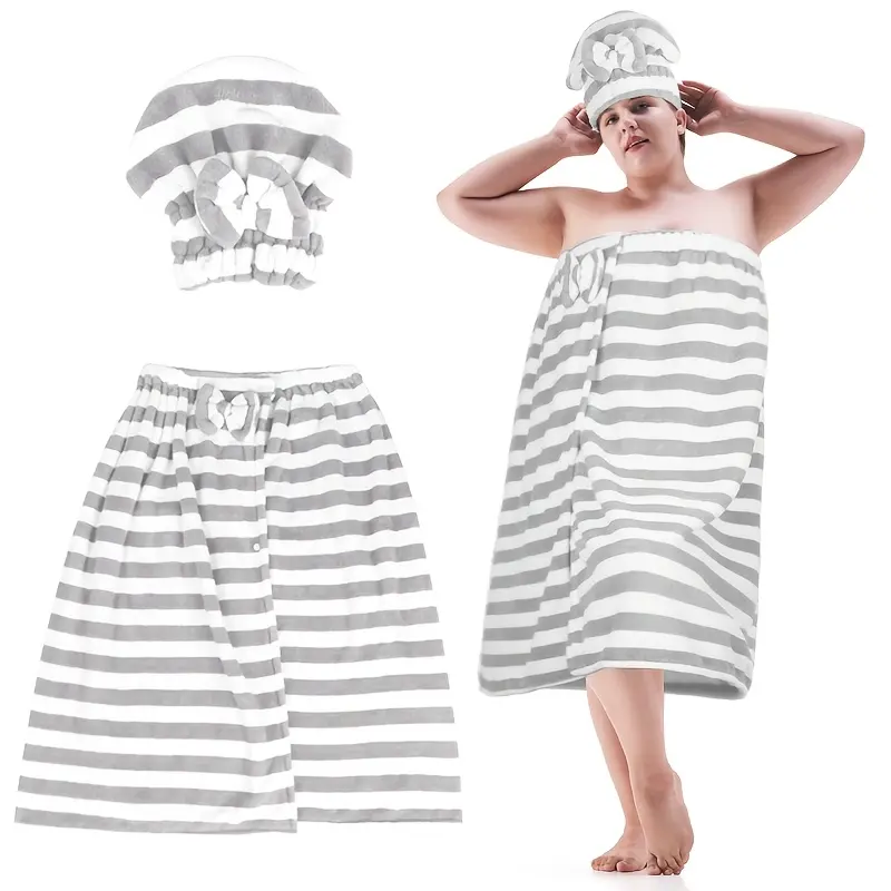 🌟 Plus Size Striped Pattern Casual Bathrobe & Shower Cap Set 🌟
