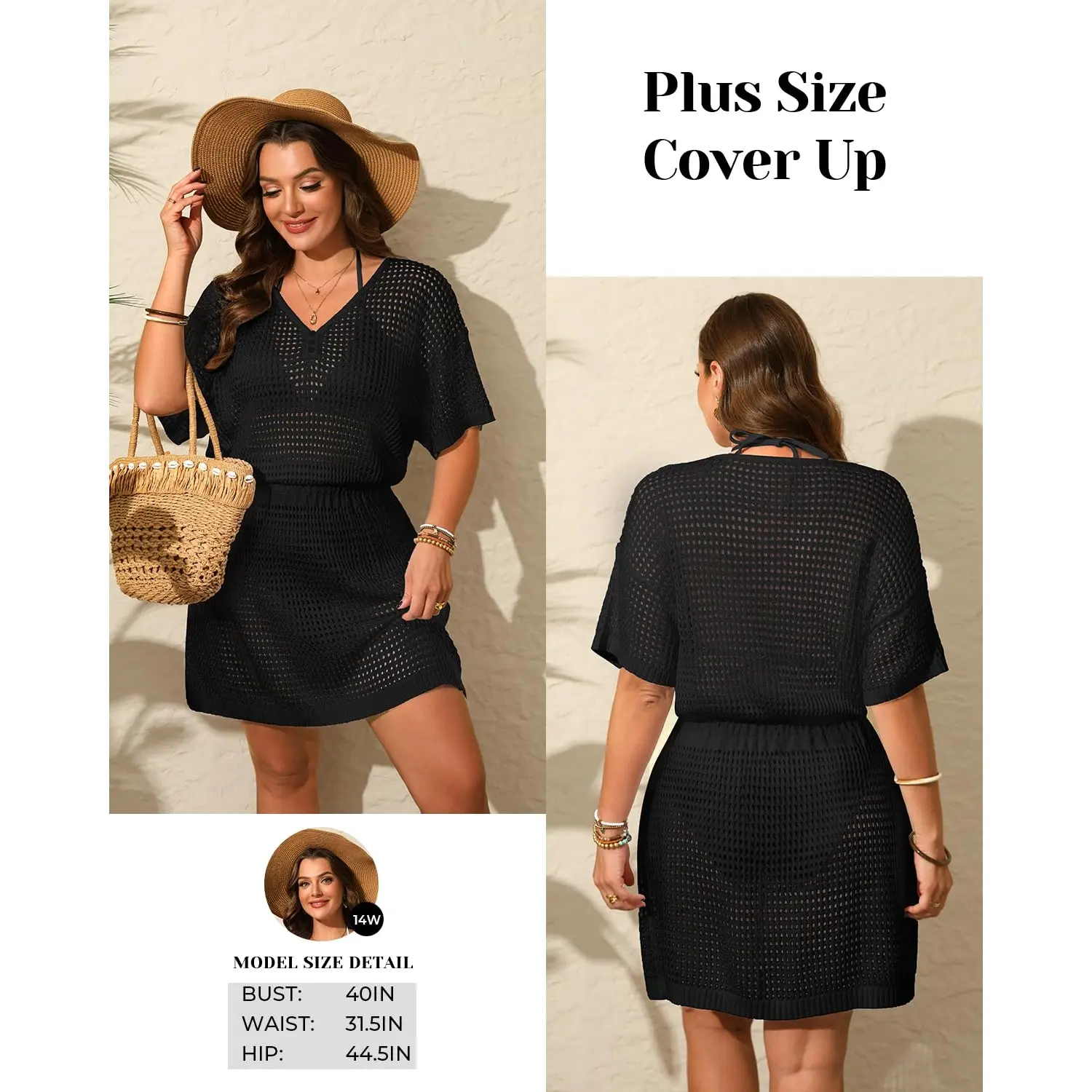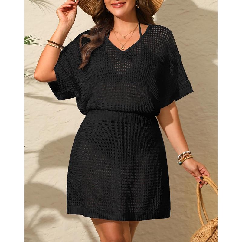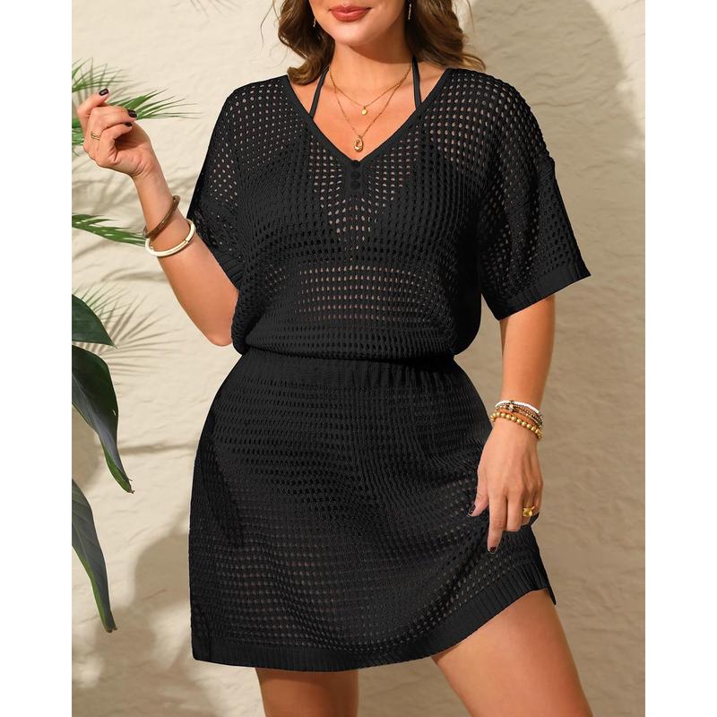 ·Plus Size Cover Ups for Swimwear: Featuring a hand-knit crochet process and see-through mesh, this cover up allows ladies to wear it without a squeezing sensation, enabling them to stretch their bodies naturally and fashionably.