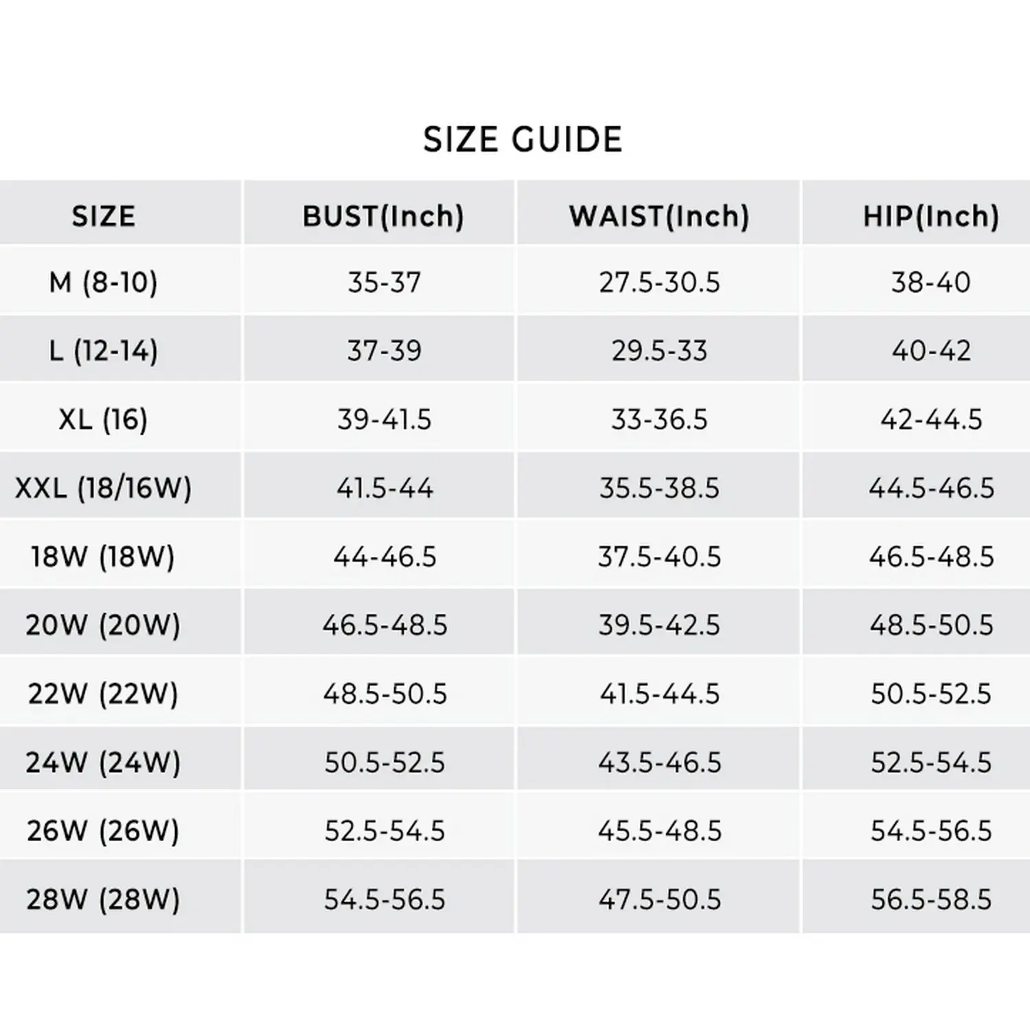 ·Knit Coverups for Women: M (US 8-10), 12 Plus (US 12W), 14 Plus (US 14W), 16 Plus (US 16W), 18 Plus (US 18W), 20 Plus (US 20W), 22 Plus (US 22W), 24 Plus (US 24W).