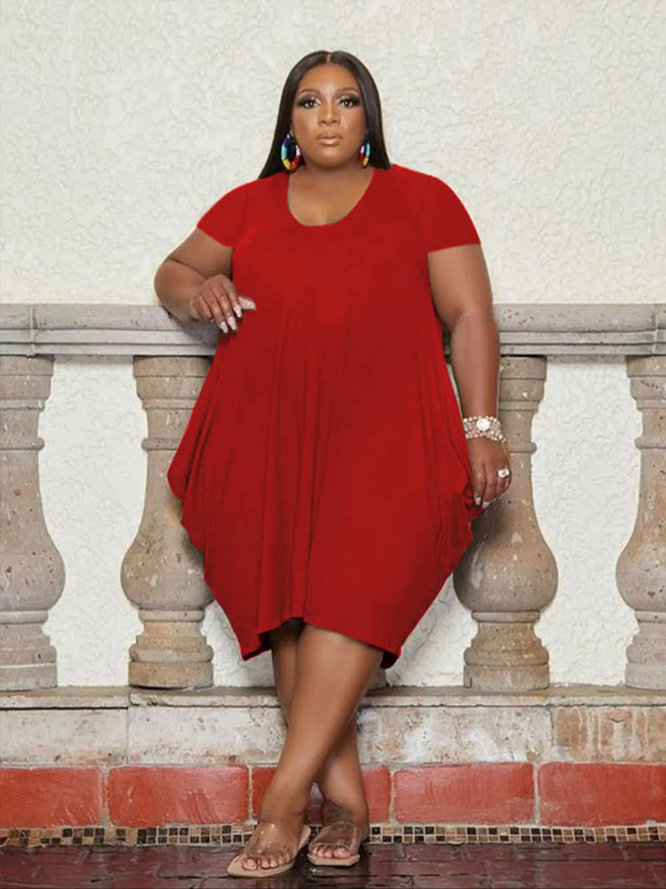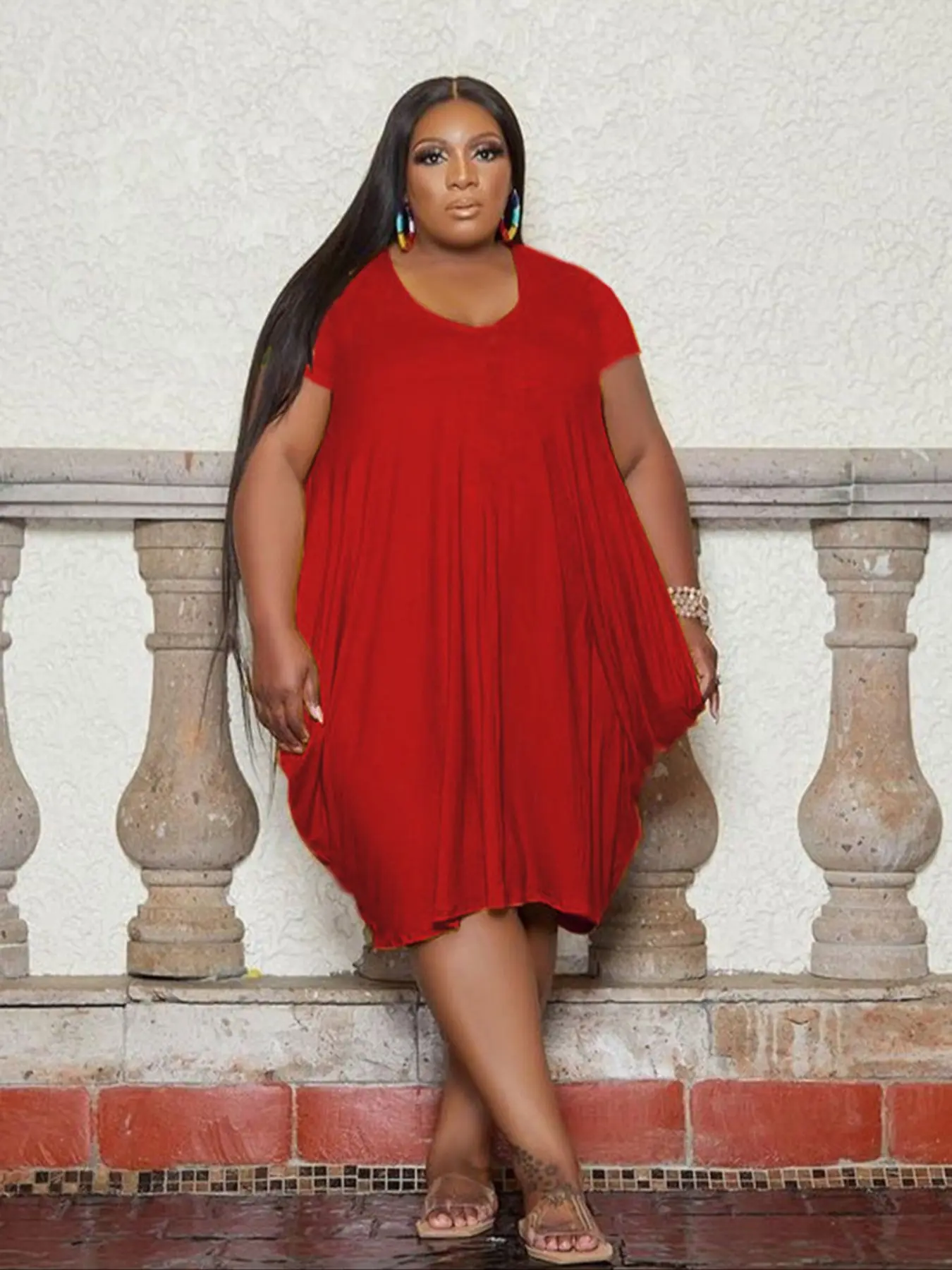 Plus Size T-Shirt Dress with Pockets, Loose-Fitting Short Sleeve Casual Dress for Summer, Comfortable Knit Fabric, Casual Wear