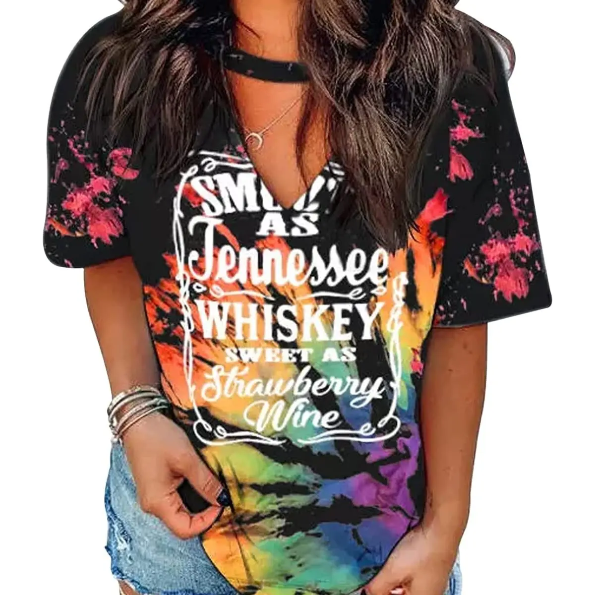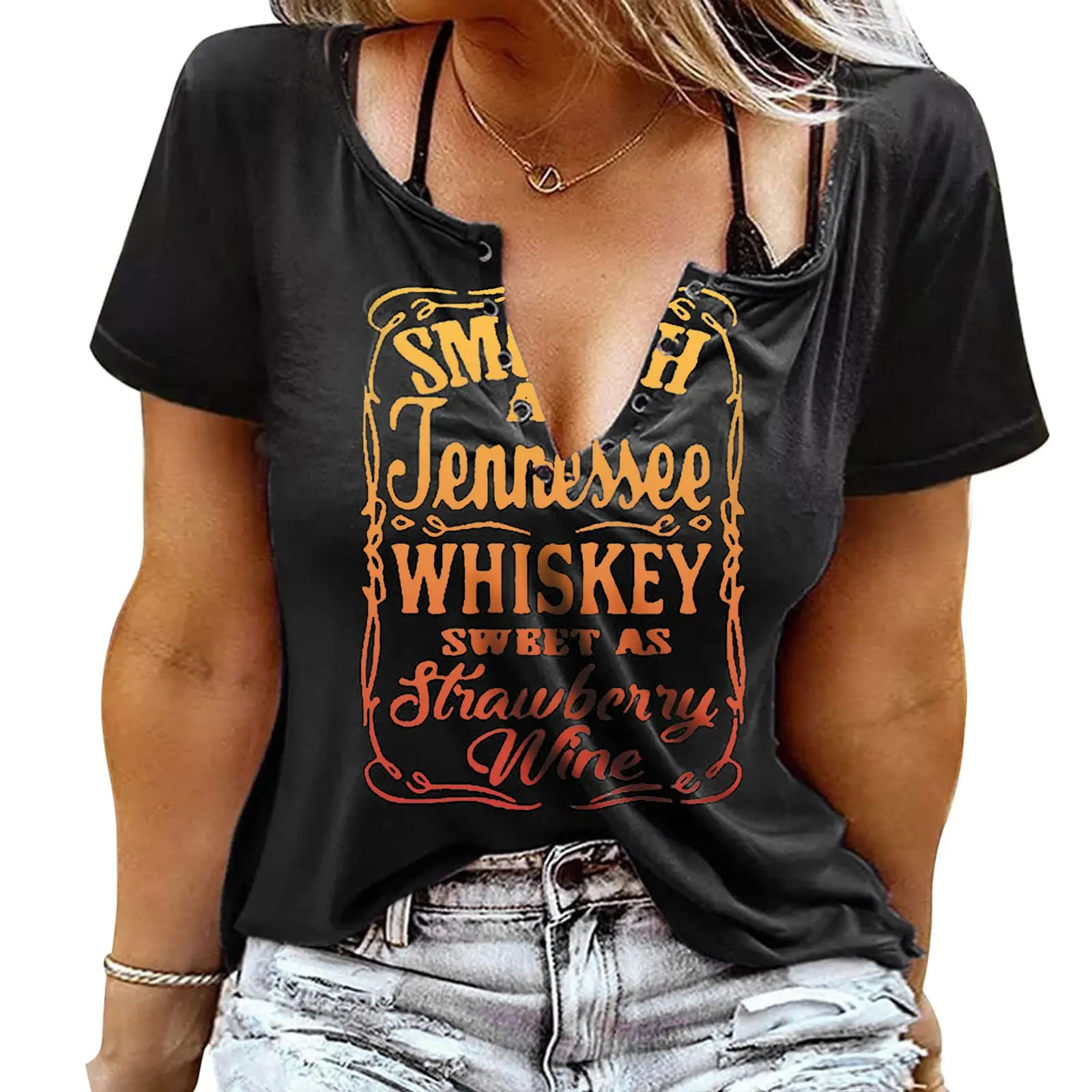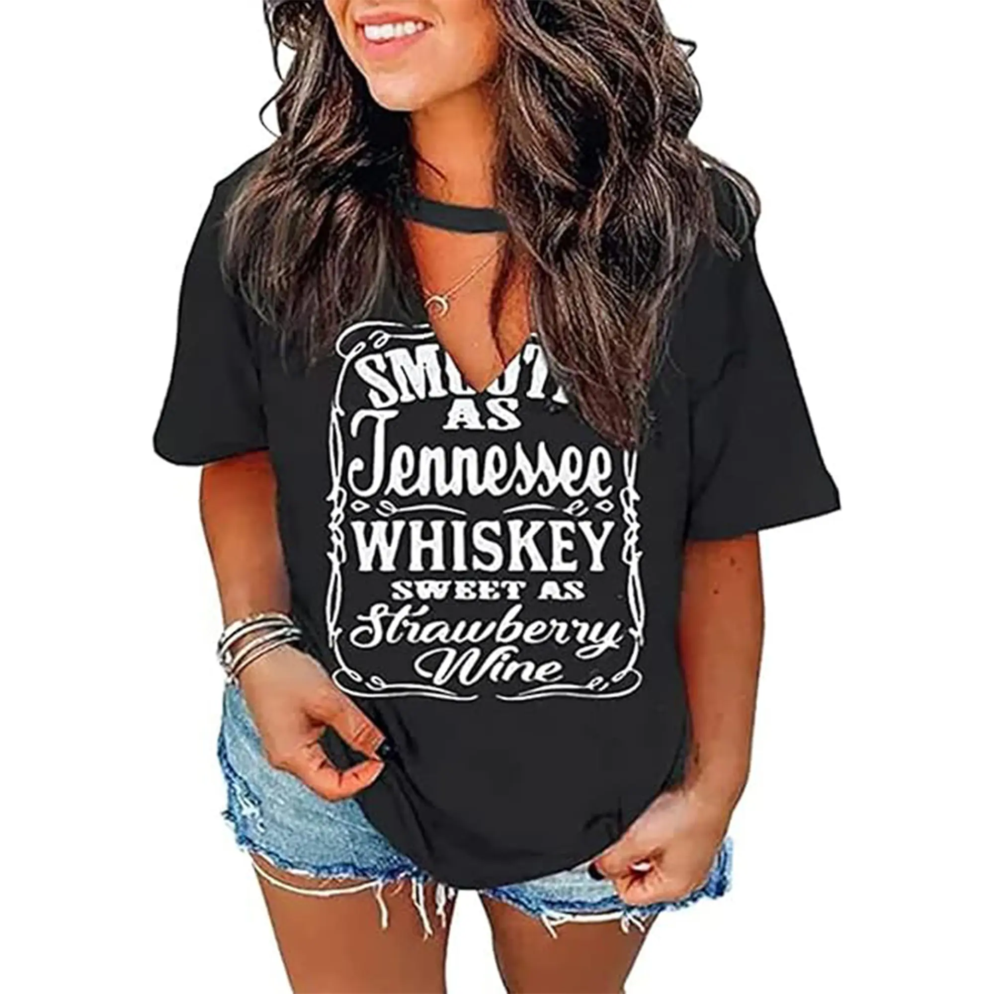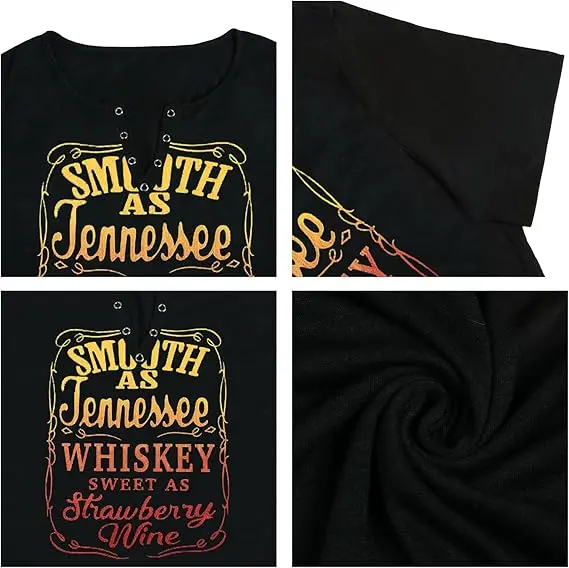·【Package Including】: 1* Plus size smooth as Tennessee whiskey sweet as strawberry wine tank top women country music tee letter print drinking t-shirt.