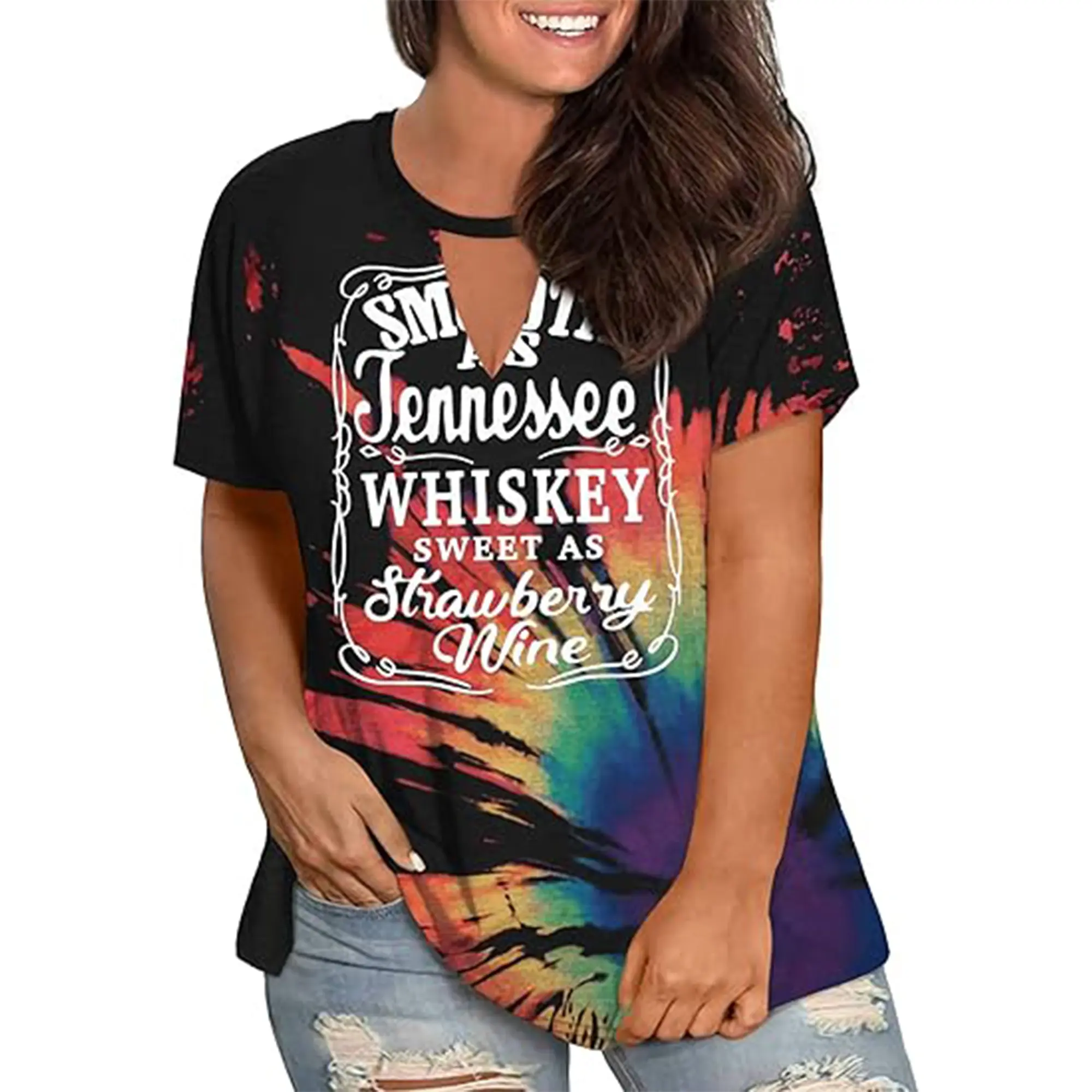 ·【Feature】: Smooth as Tennessee whiskey sweet as strawberry wine funny graphic plus size tank top, vintage distressed ring hole deep v neck sleeveless t shirt Tank Top for women 1x 2x 3x 4x, summer letter print funny sayings beer shirt, holiday vacation drinking party funny shirt women.