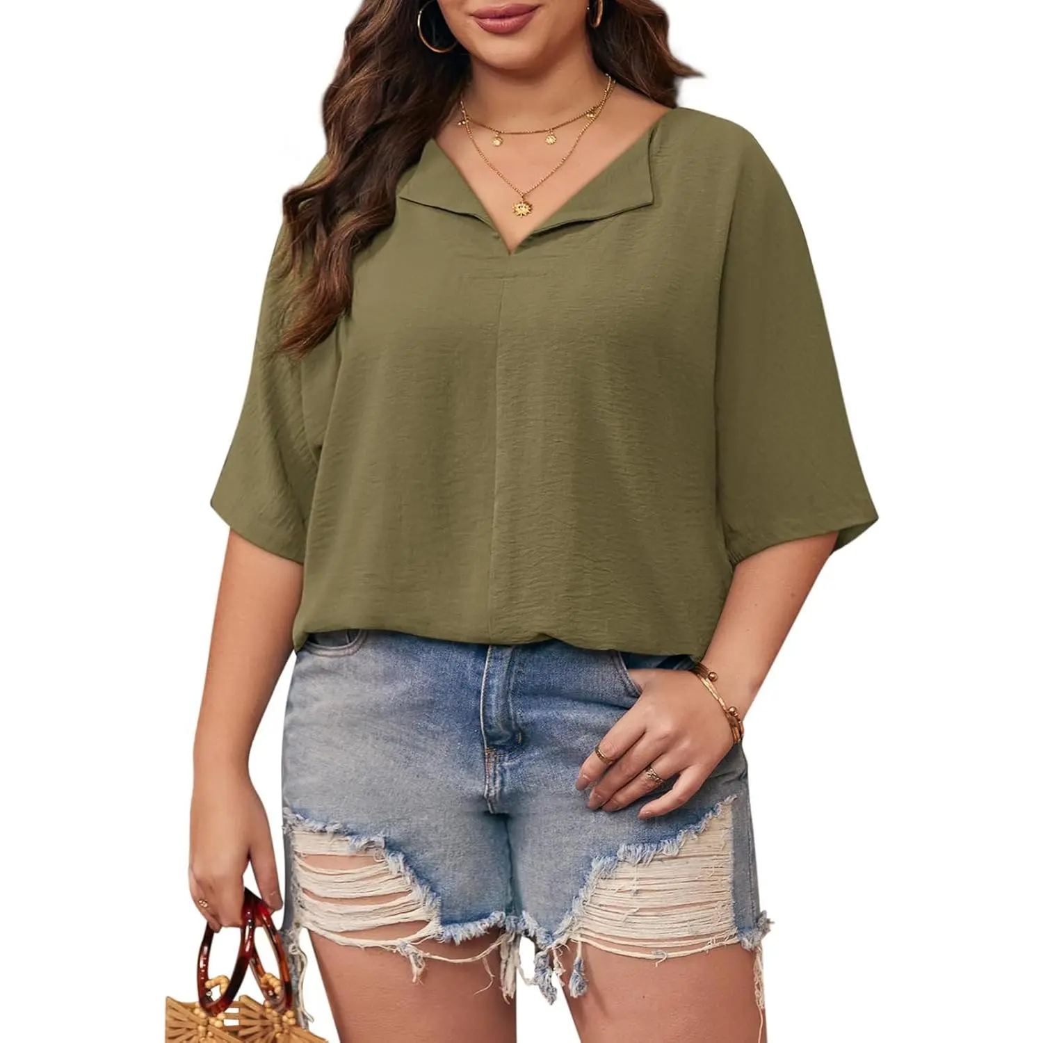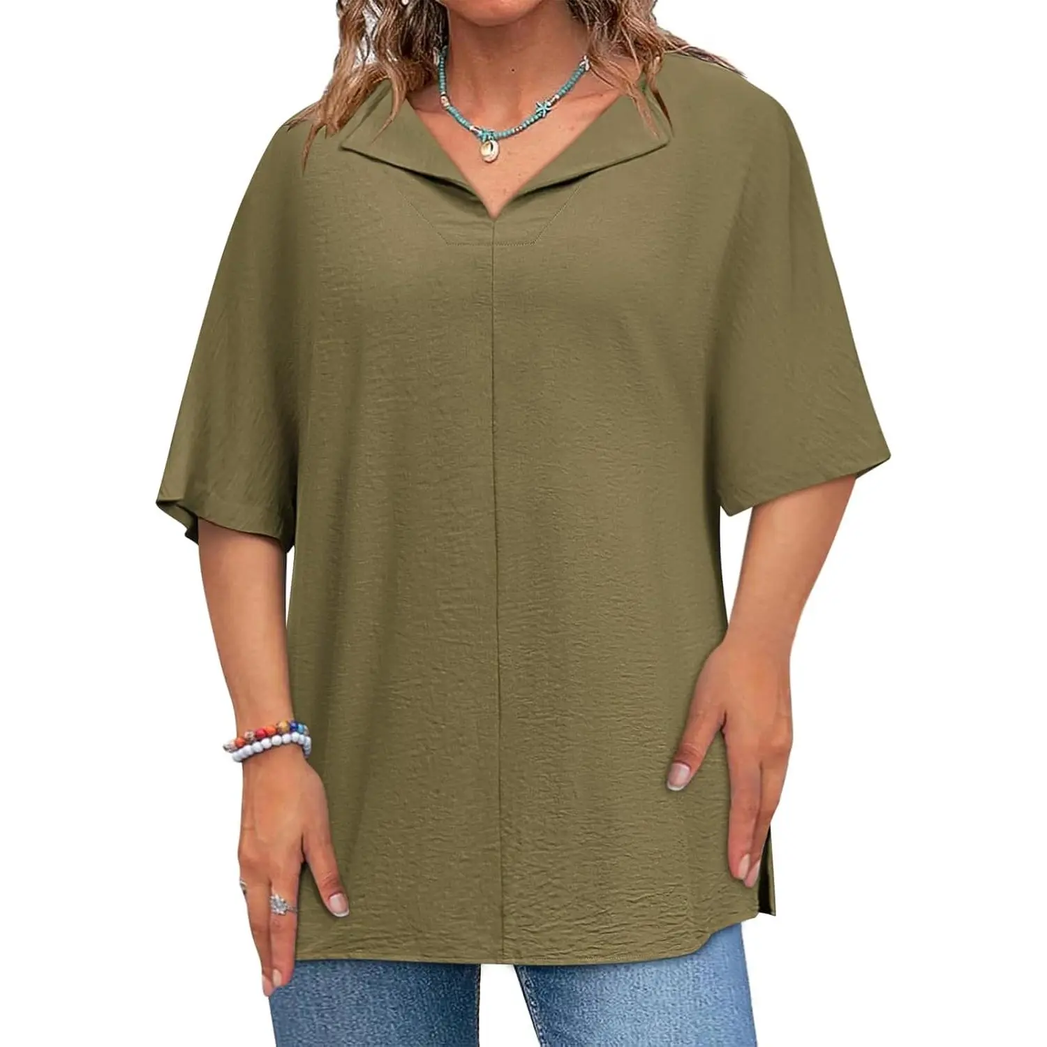 5. Imily Bela Curve Womens 2025 Plus Size Tops Short Sleeve V Neck Tee Blouse Summer Loose Fit Casual Tunic Top XL-5XL