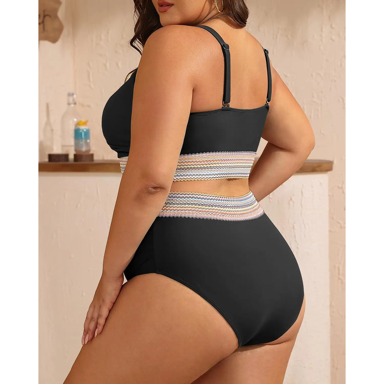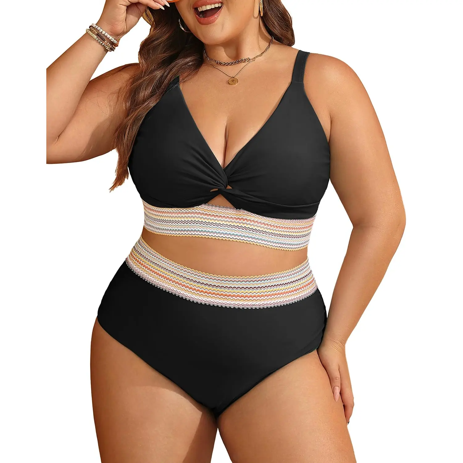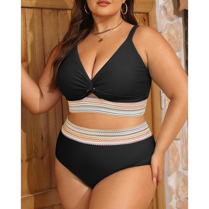 ·Plus Size Bikini Set: Featuring a V-neck bikini top with removable cups and adjustable shoulder straps, this set offers exceptional support and a customizable fit.