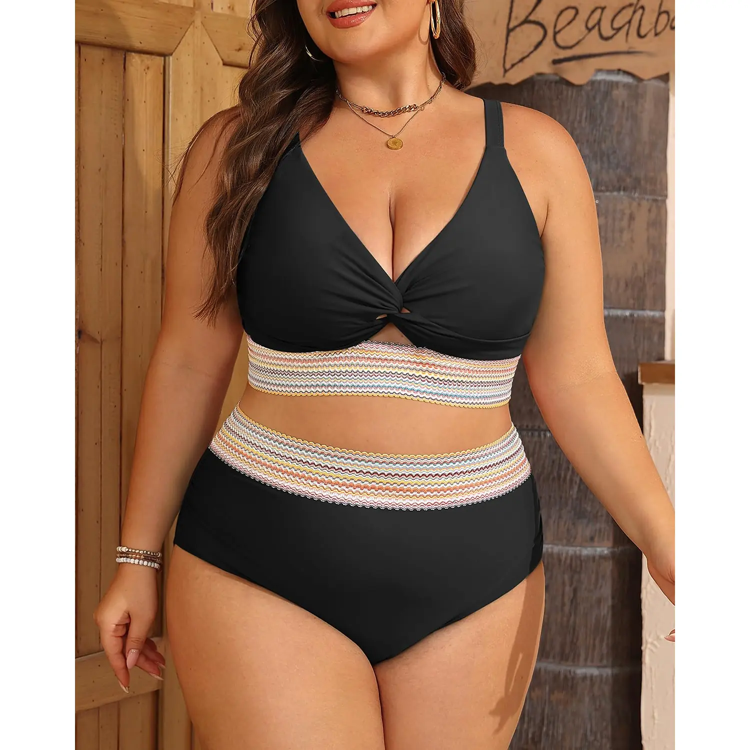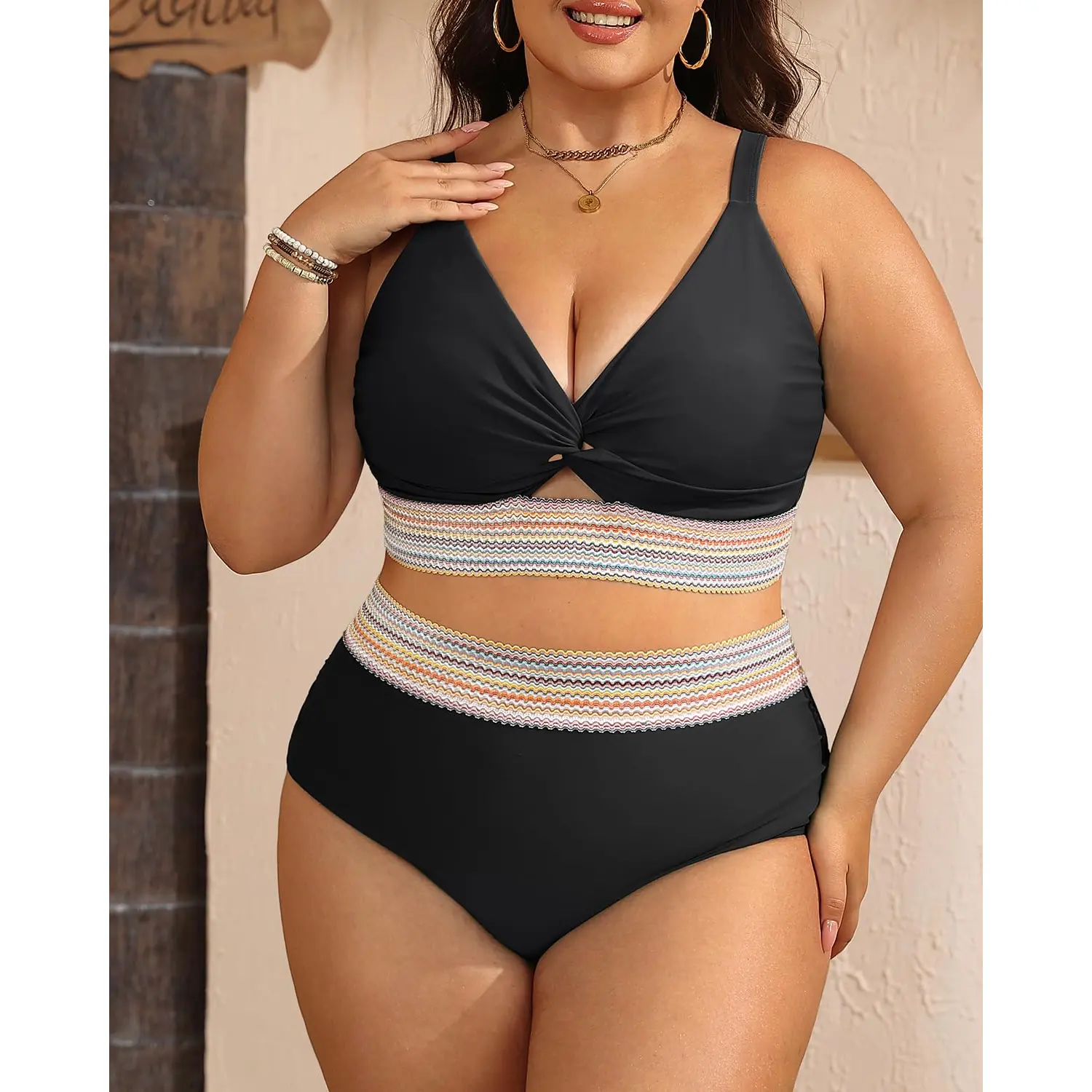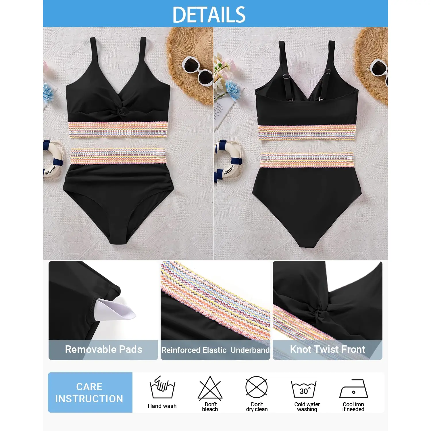 ·Plus Size Bikini Set: Featuring a V-neck bikini top with removable cups and adjustable shoulder straps, this set offers exceptional support and a customizable fit.